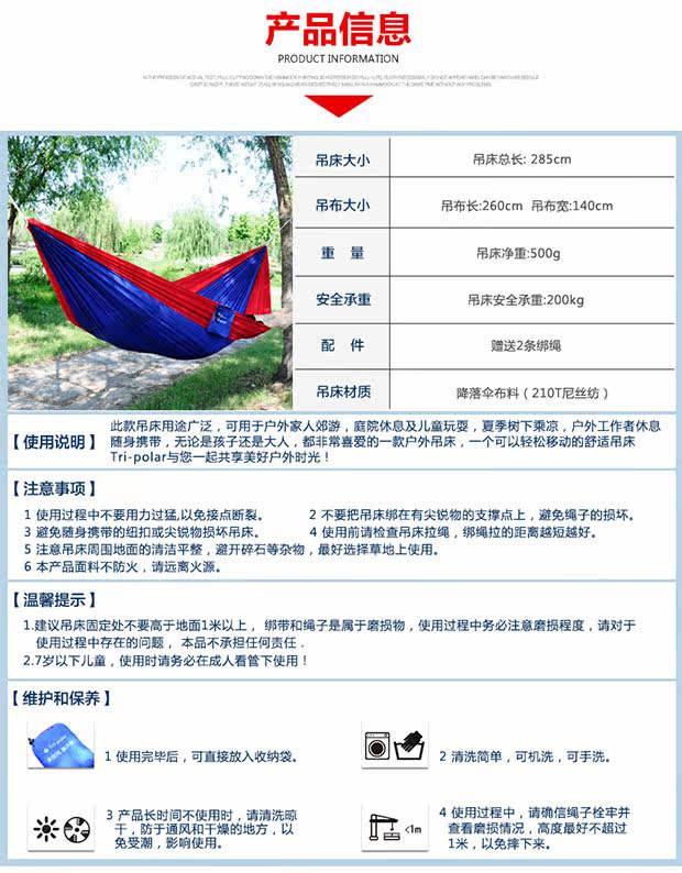 Парамбуокуор ткань подвесная кровать Домохозяйство двойное противоположное переворот, дышащий взрослый крытый кемпинг пешеходный альпинист подвеска