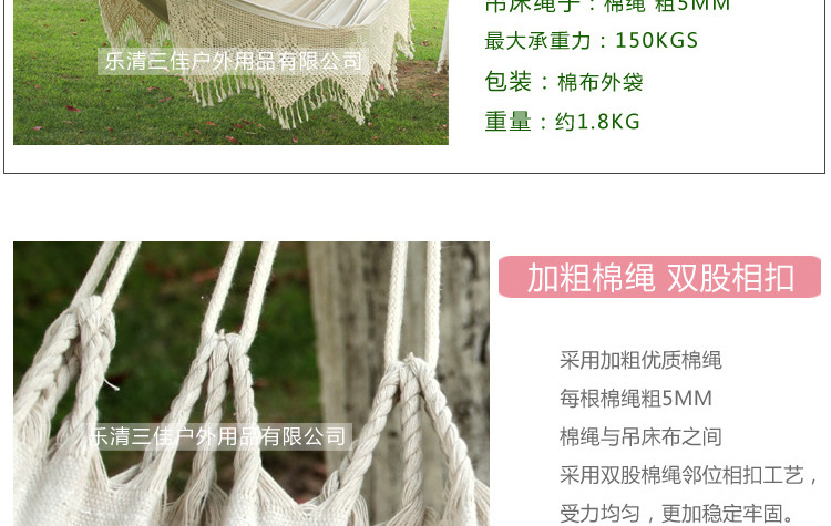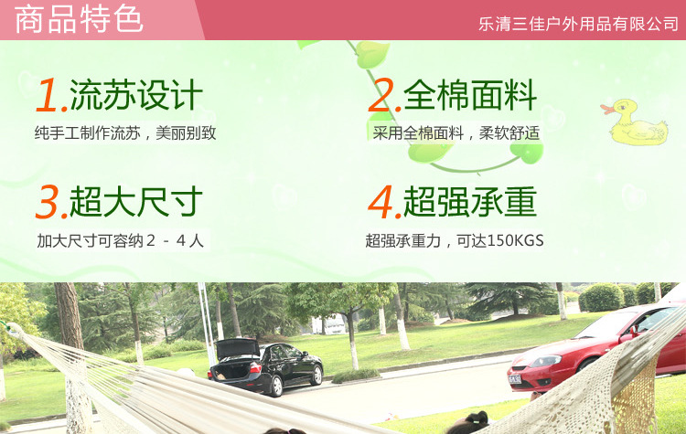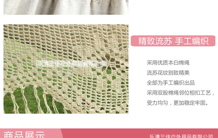 Наружные продукты для взрослых хлопковой гамак с потоковым вещением, качающимися белыми, качающими