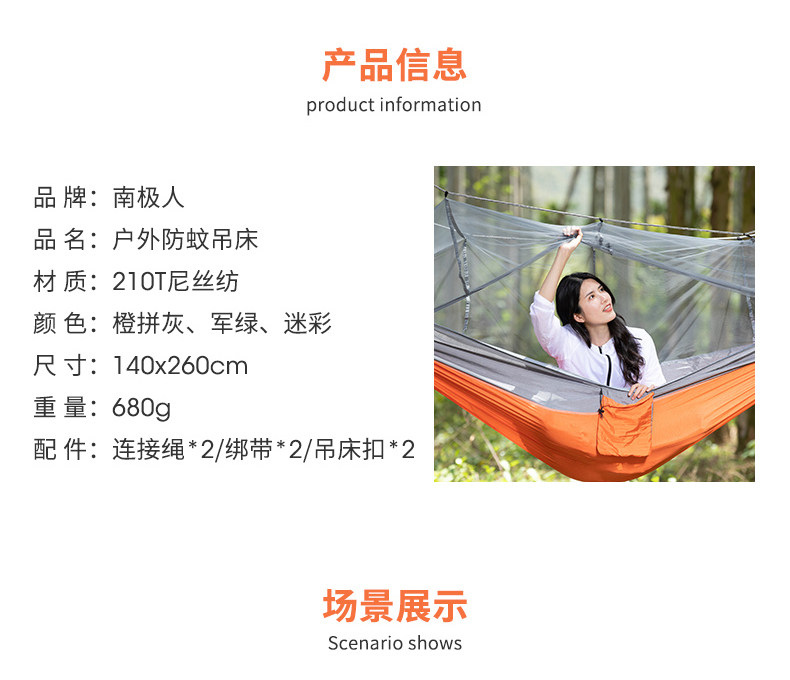 南极人 Дорожные качели для двоих, москитная сетка для домашнего использования, увеличенная толщина, защита от опрокидывания