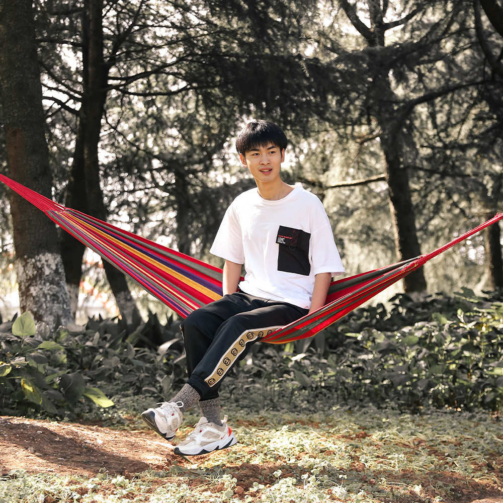 7. Обратите внимание на чистку и плоскостность земли вокруг гамака, чтобы не выбирать место, где есть измельченные камни, такие ветви, как ветви (как попытка использовать на траве).