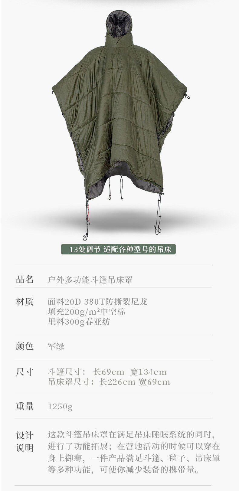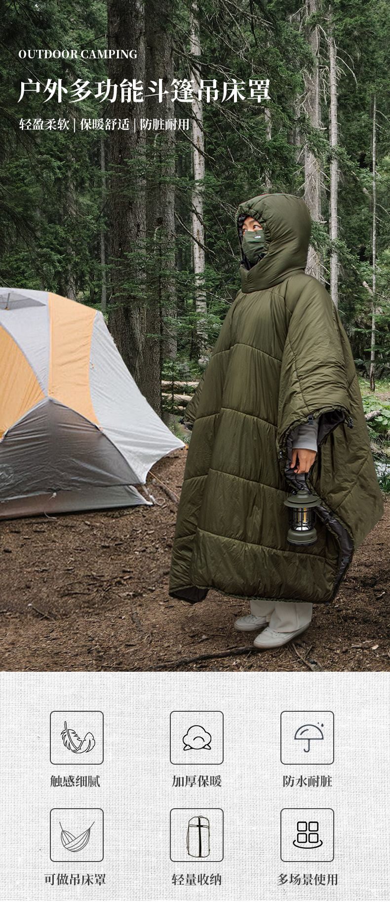 Дорожный универсальный ветрозащитный удерживающий тепло плащ, спальный мешок