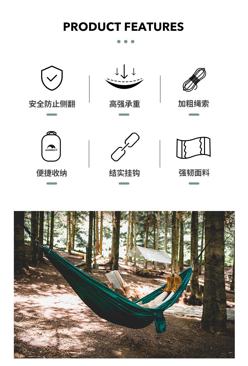 KOMMOT Дорожные сверхлегкие портативные качели для кемпинга для взрослых для двоих, защита от опрокидывания