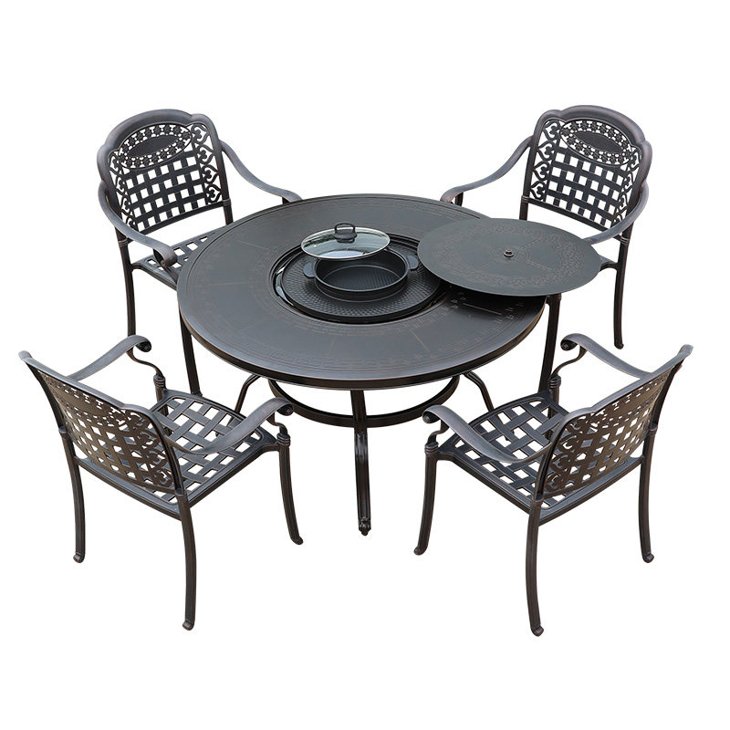 Столы и стулья для барбекю на открытом воздухе, бездымный электрический горячий горшок, открытый двор терраса садовая мебель Домашняя алюминиевые столы и комбинации стул