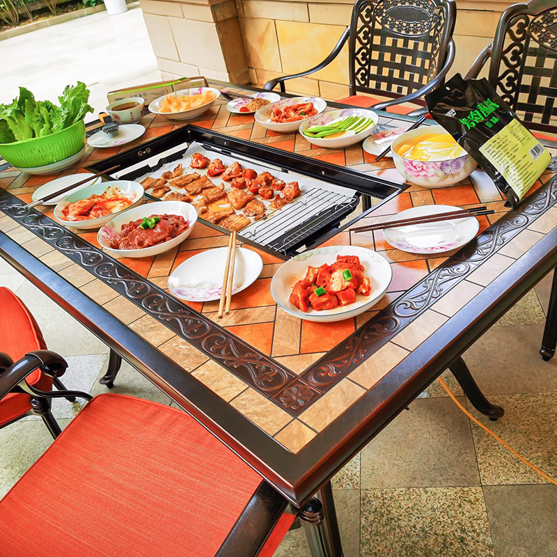 Стол для барбекю на открытом воздухе. Домохозяйство бездымные электрические пекарня для гриль гриль на гриле на гриле на гриле может быть коммерческое на открытом воздухе и комбинация стула
