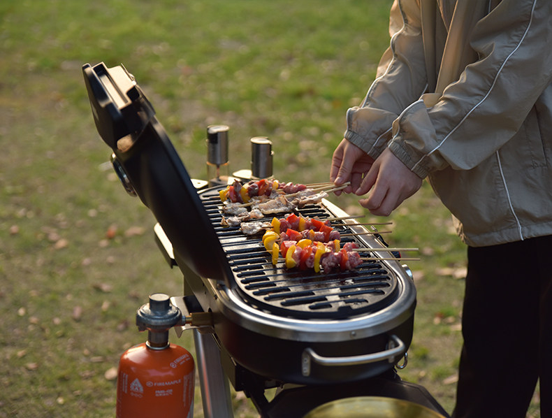 LTHW путешествует на улице с двойным пламенным газом на гриле на гриле печи для лагеря для барбекю Двортард Стинг Складывание бездымной на гриле стойки