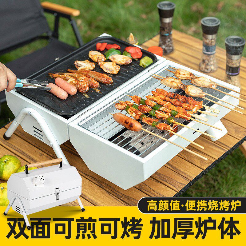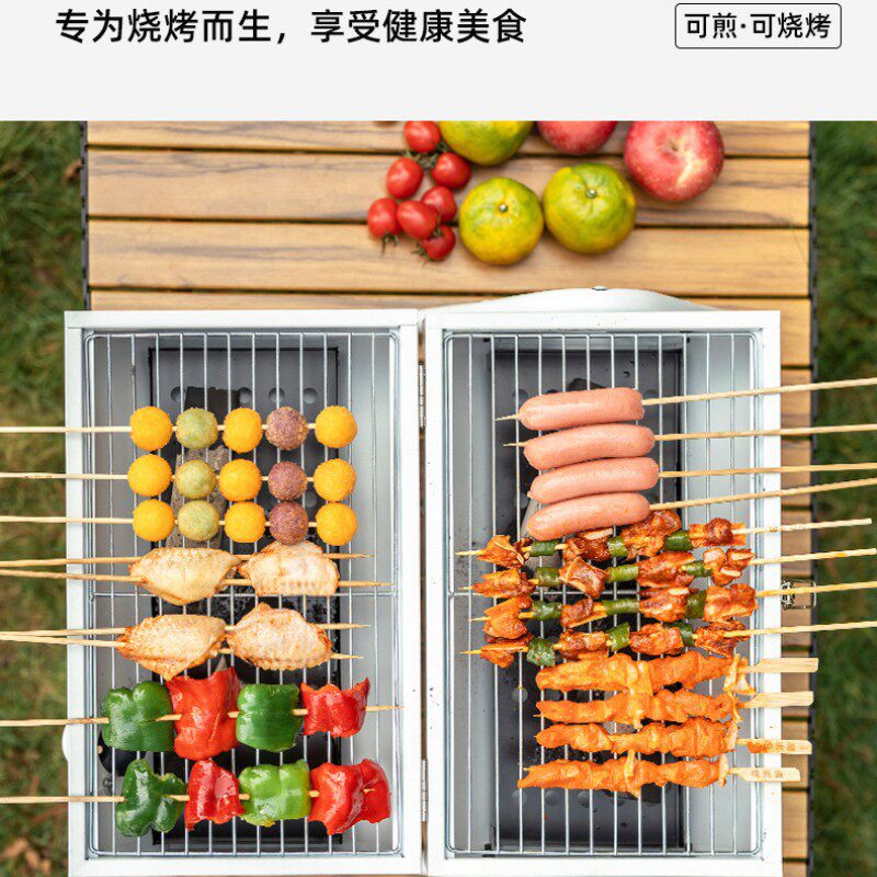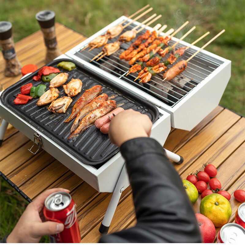 Портативная печь для барбекю с двойной ручной стойкой для барбекю в струнную плиту на открытом воздухе для кемпинга Угля