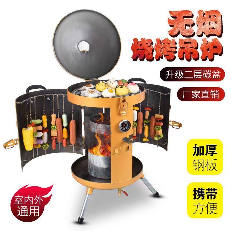 Подвесная печь для барбекю, бездымный гриль для барбекю, угольный гриль, круглый гриль для улицы, подвесная печь с углем для дома, инструмент, портативный гриль