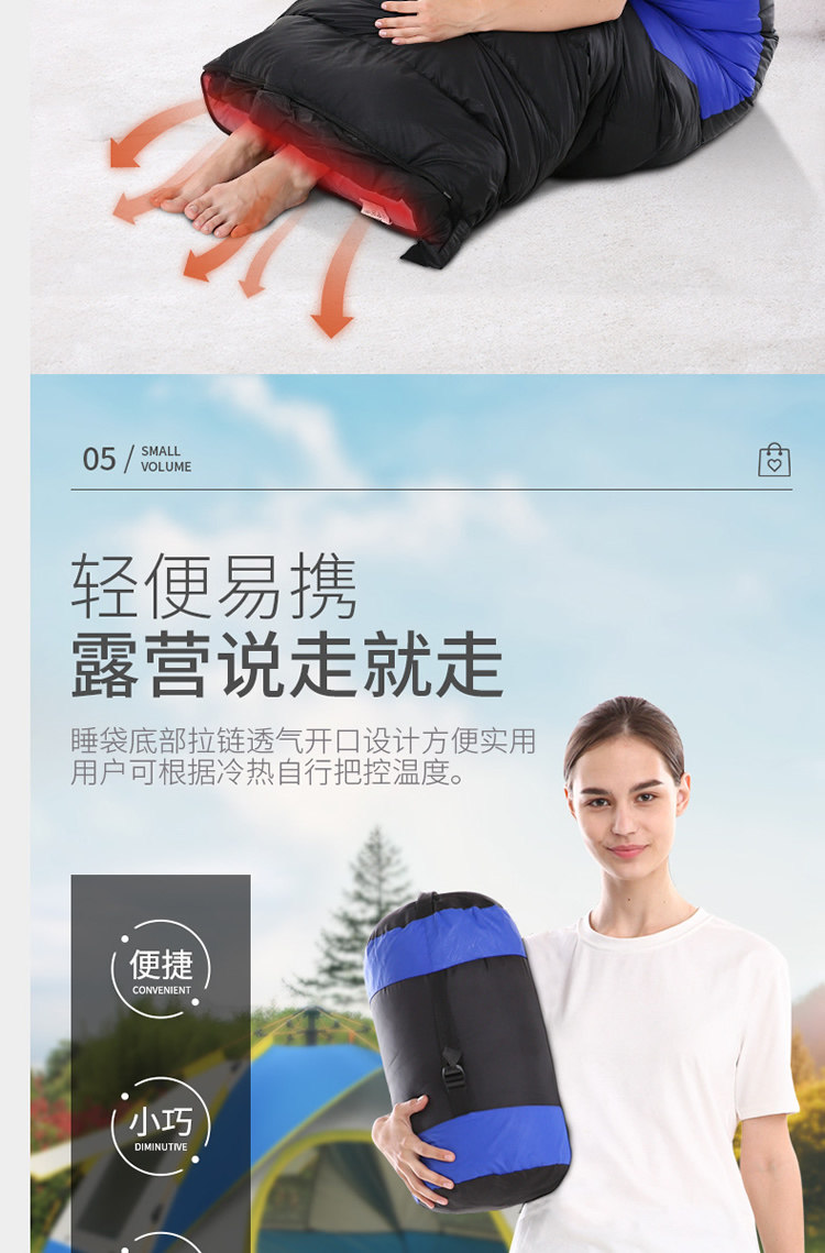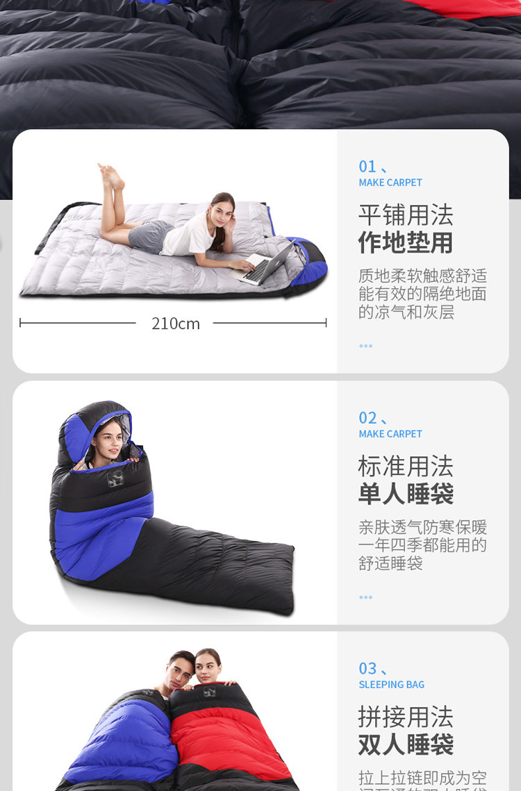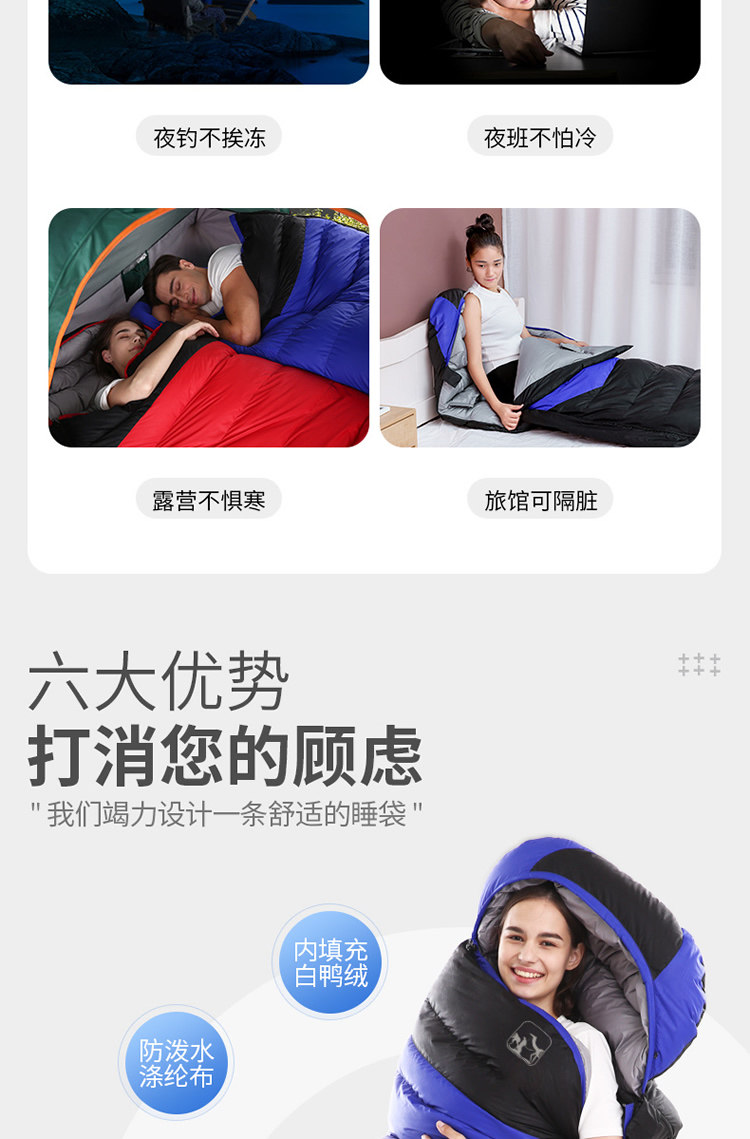 Зимний дорожный хлопковый спальный мешок для взрослых для путешествий для кемпинга с пухом, увеличенная толщина