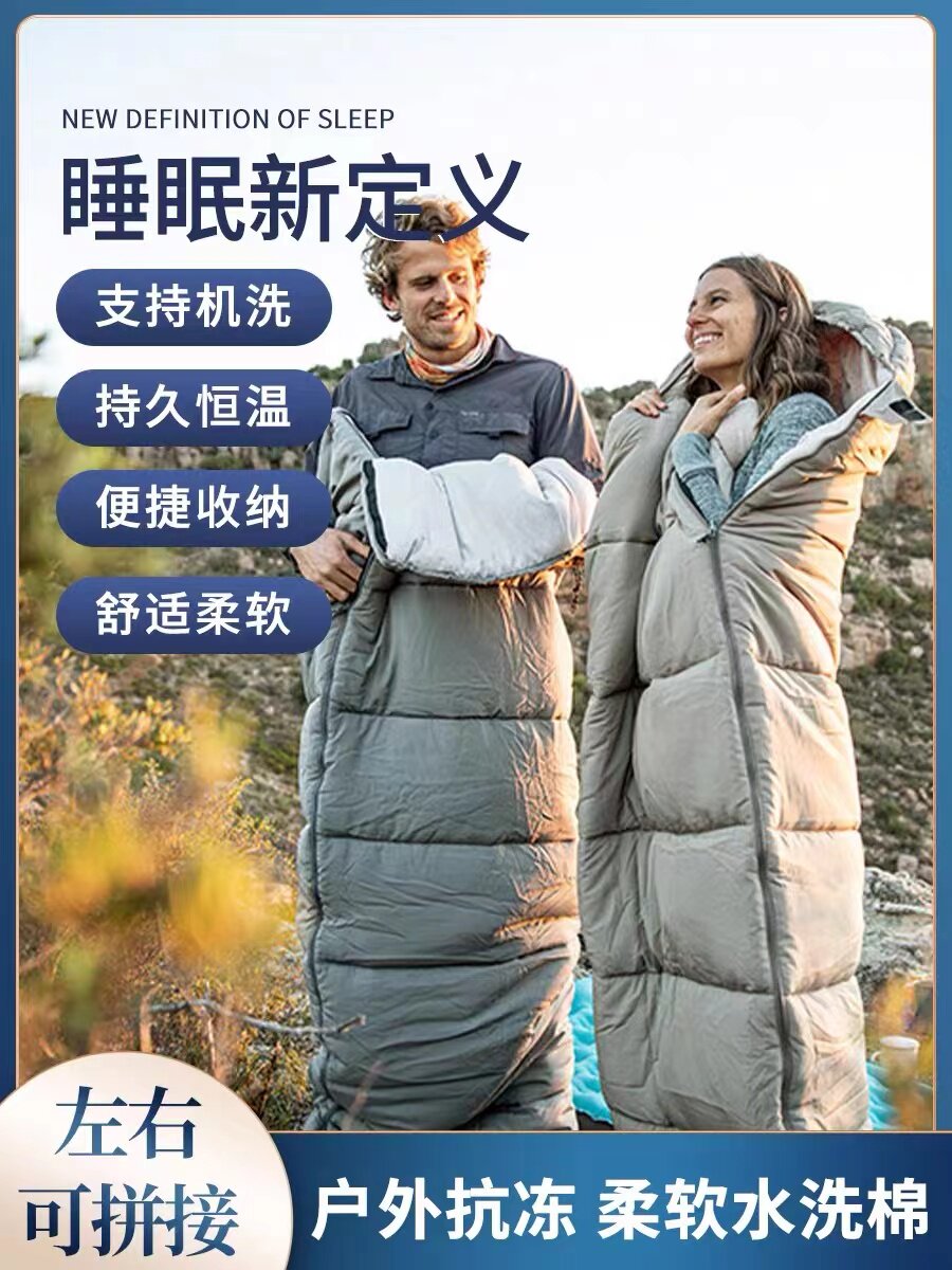 Дорожный спальный мешок для взрослых, палатка для кемпинга с пухом для путешествий на четыре сезона, увеличенная толщина