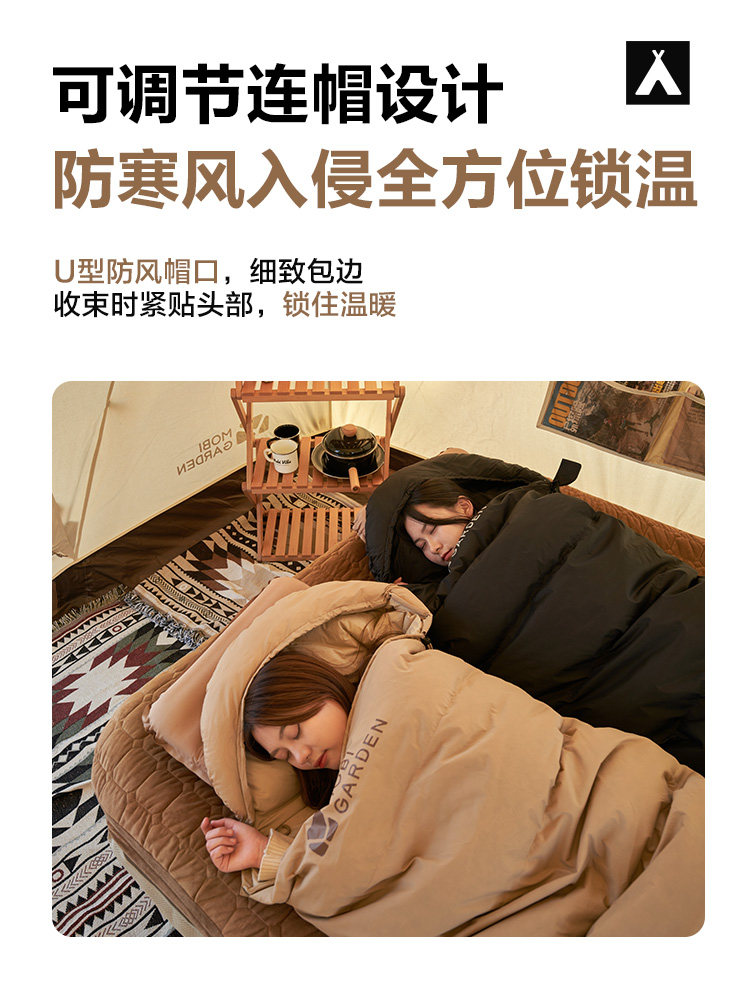 Дорожный удерживающий тепло зимний спальный мешок с пухом для кемпинга для взрослых для двоих, увеличенная толщина
