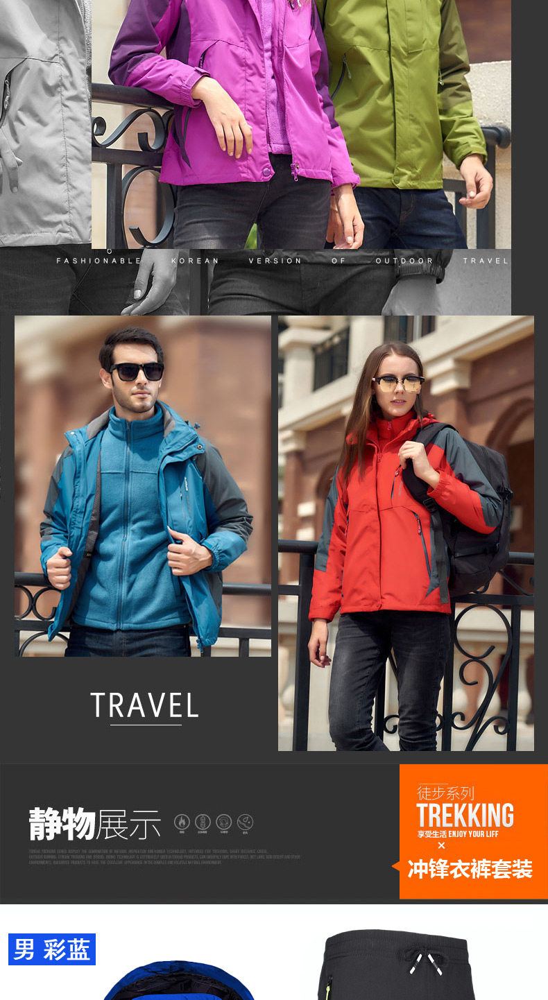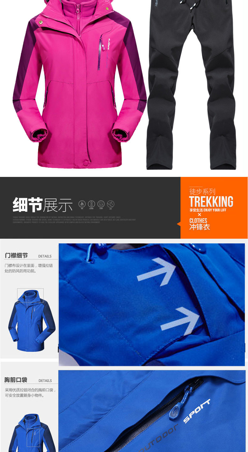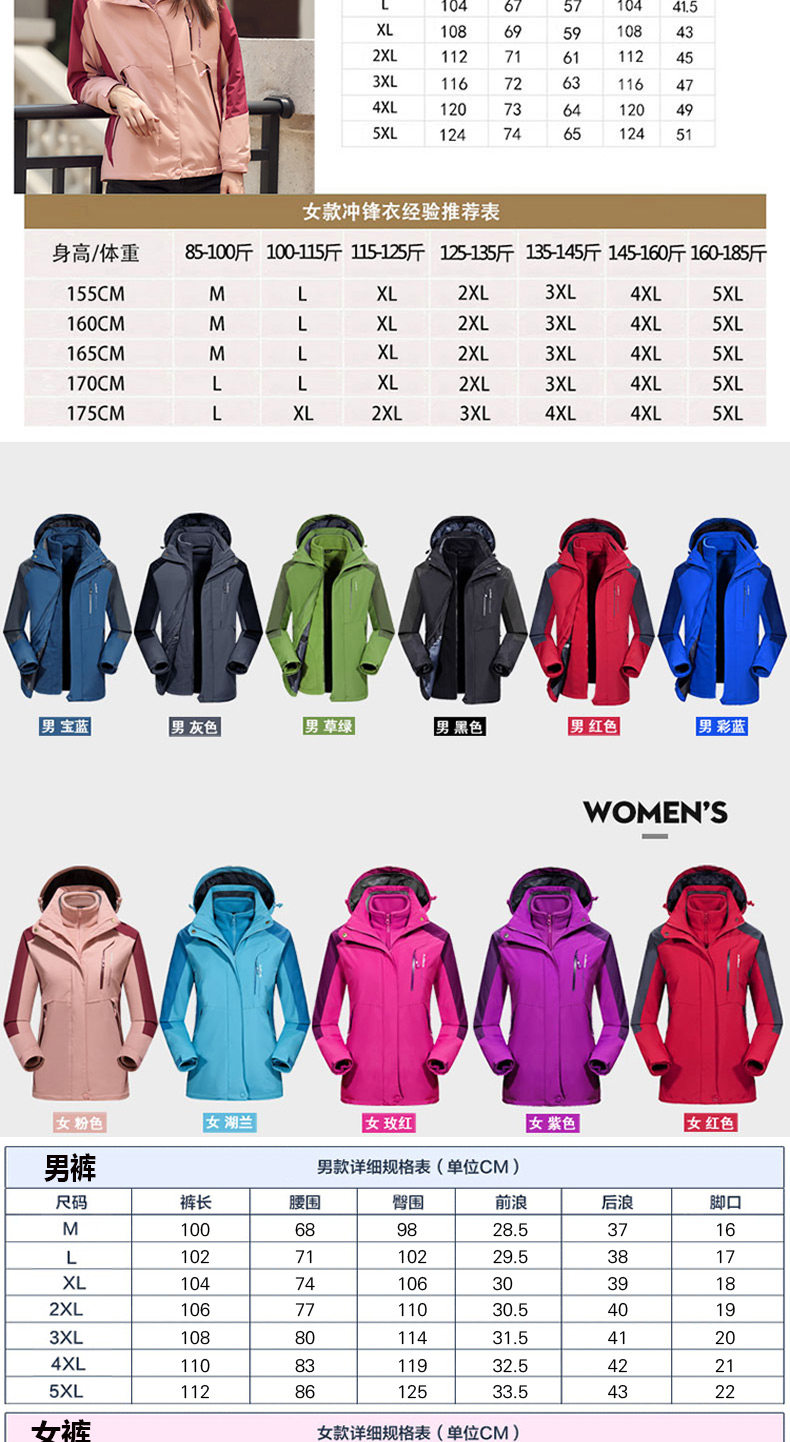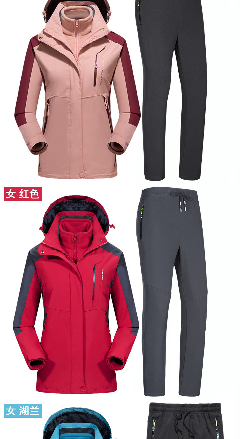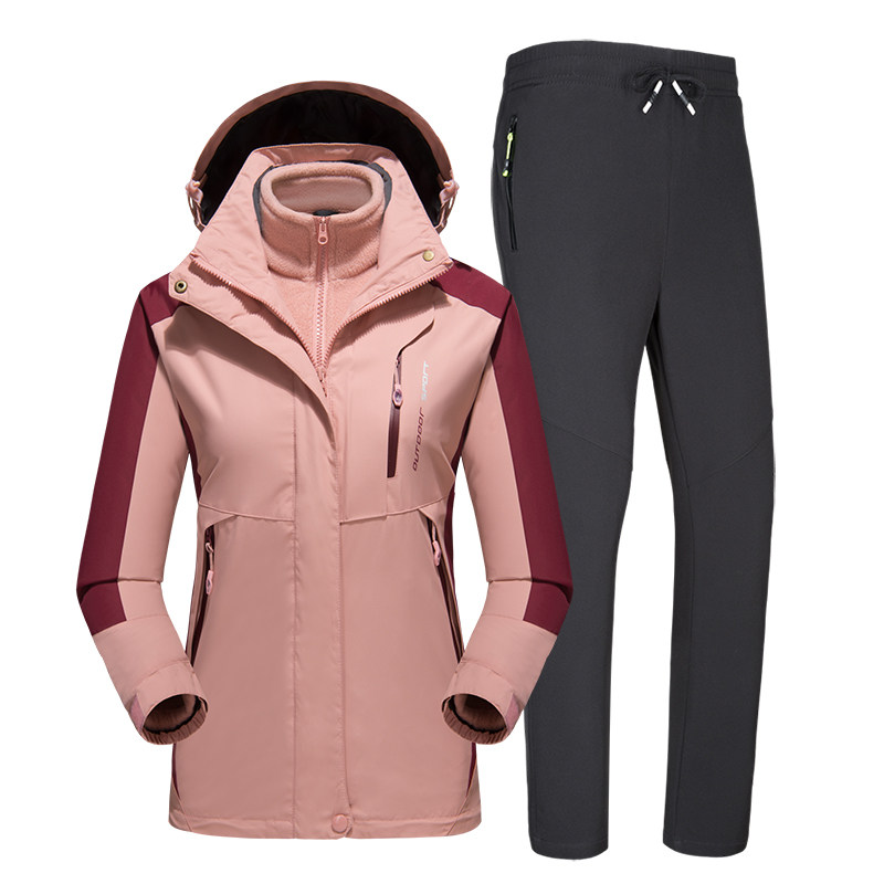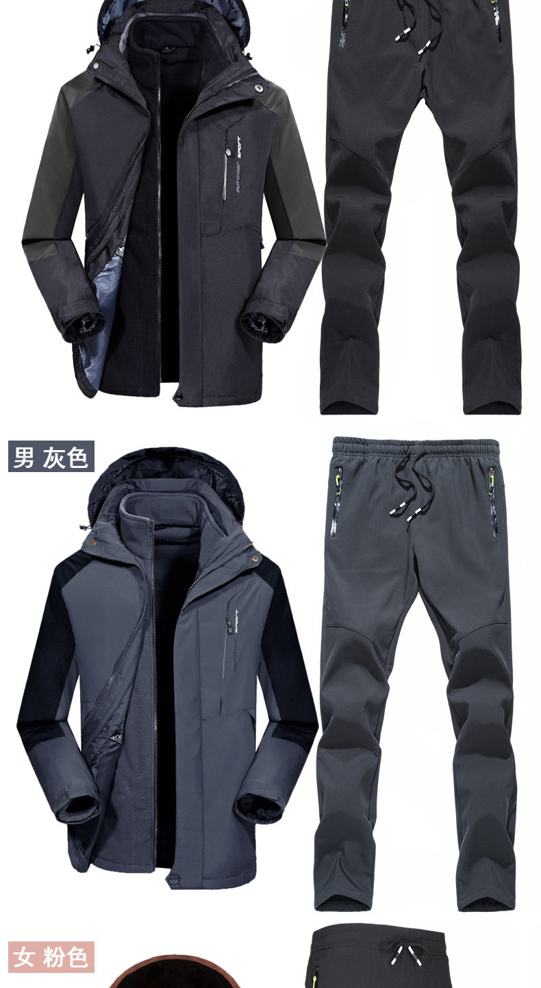 Дорожная куртка подходит для мужчин и женщин, водонепроницаемый съемный комплект, утепленный альпинистский комбинезон, штаны, «три в одном»