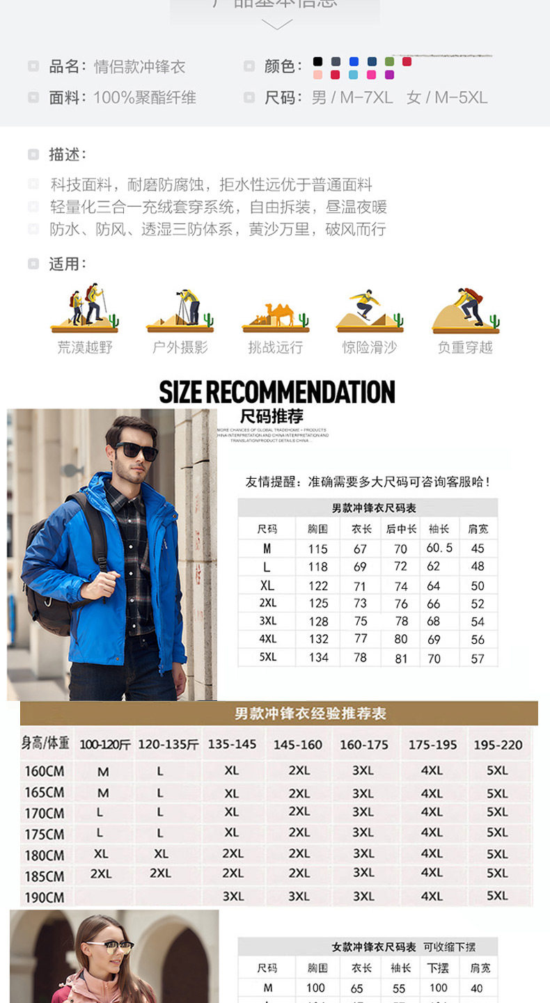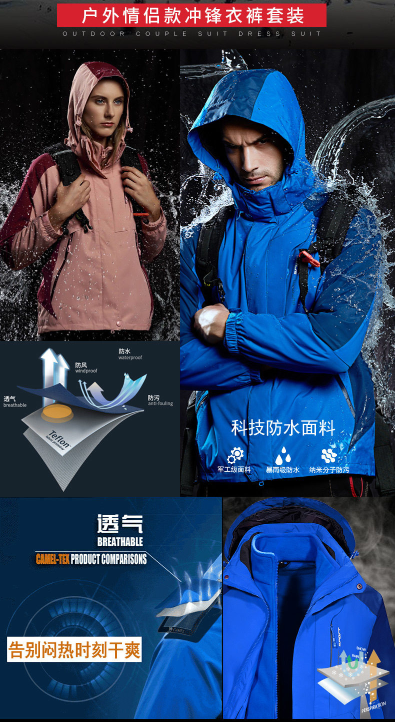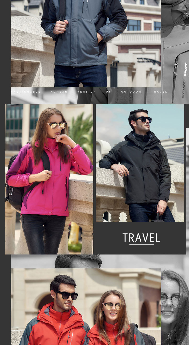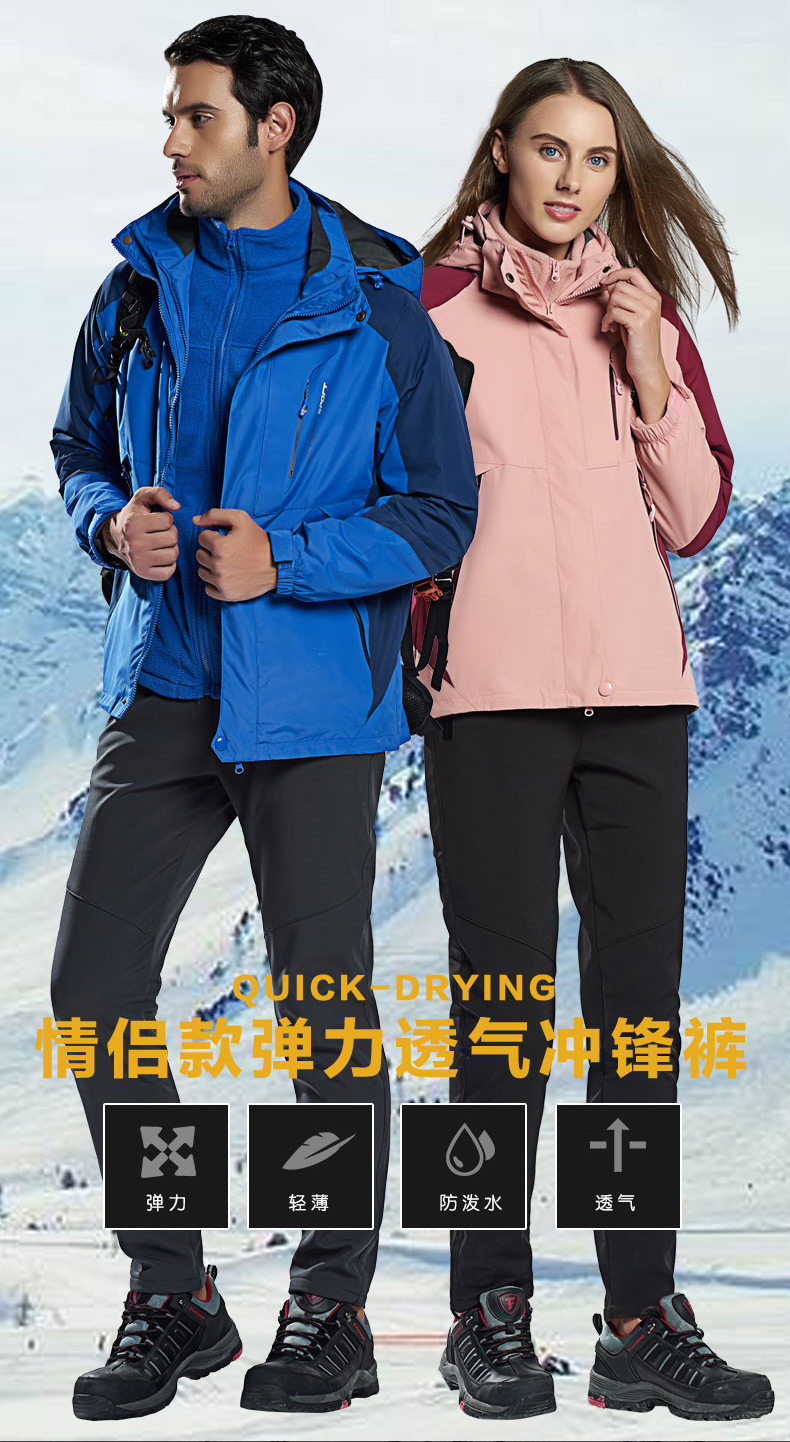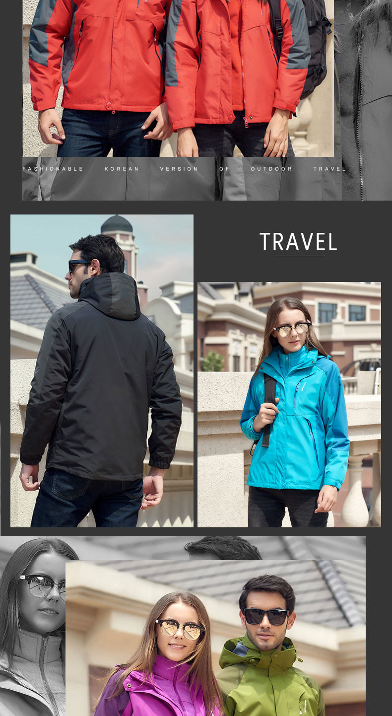 Дорожная куртка подходит для мужчин и женщин, водонепроницаемый съемный комплект, утепленный альпинистский комбинезон, штаны, «три в одном»