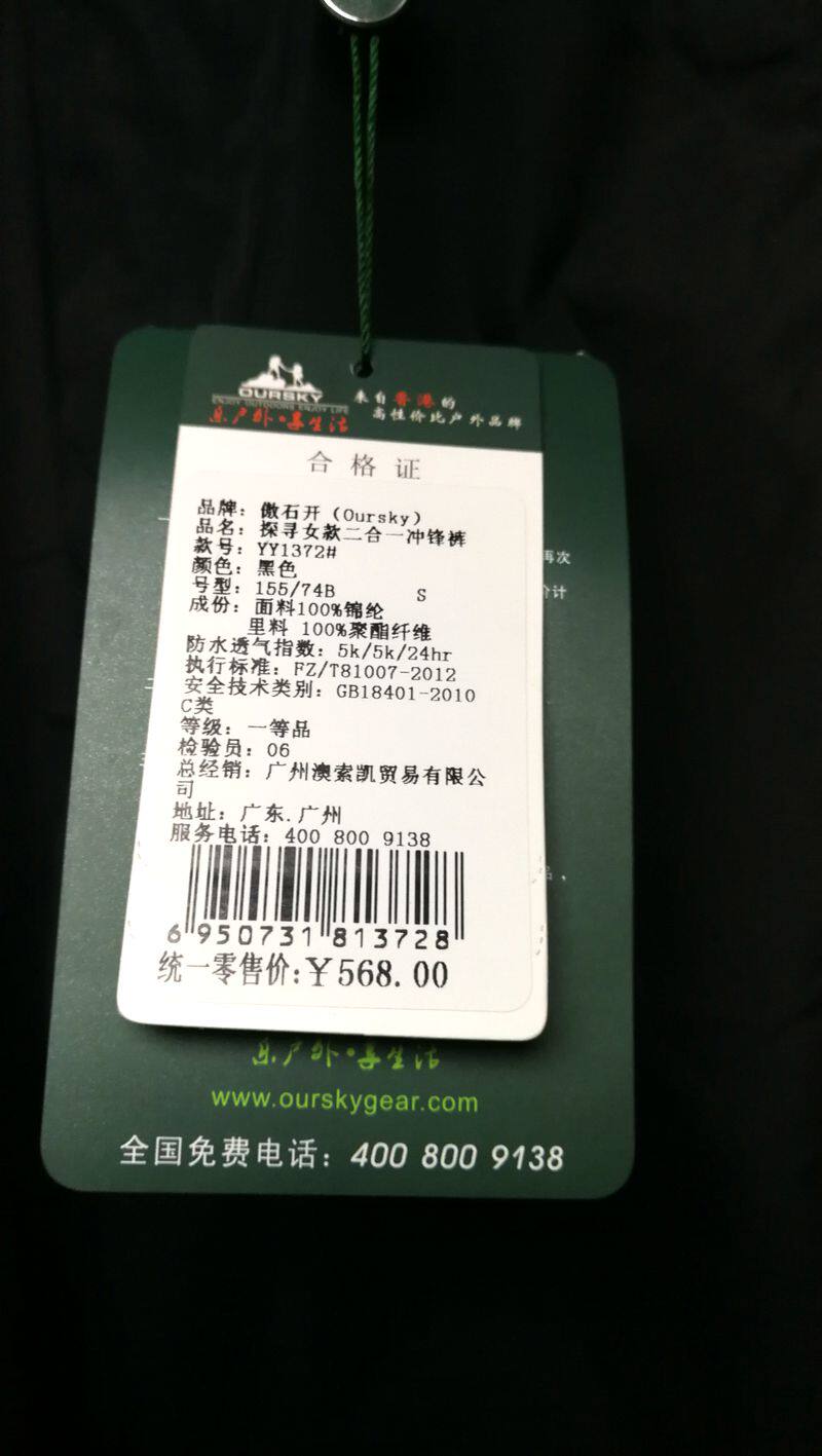Oursky/傲石开 Дорожный водонепроницаемый дышащий портативный комплект, штаны с зарядкой, женский стиль