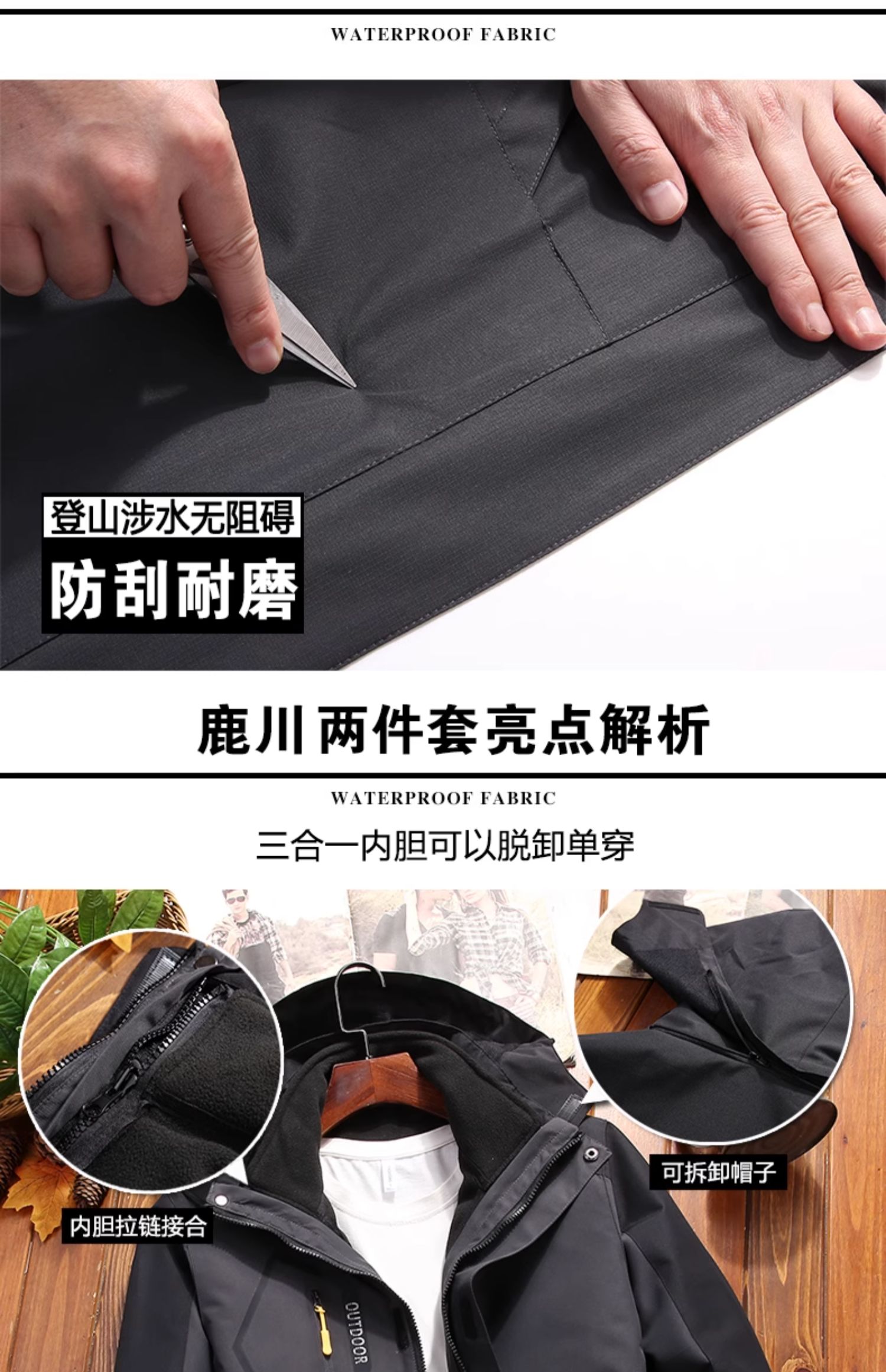 Дорожная съёмная утепленная альпинистская куртка, «три в одном»
