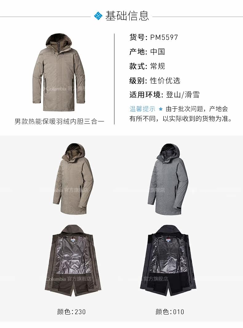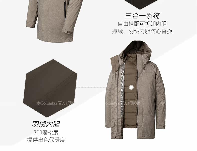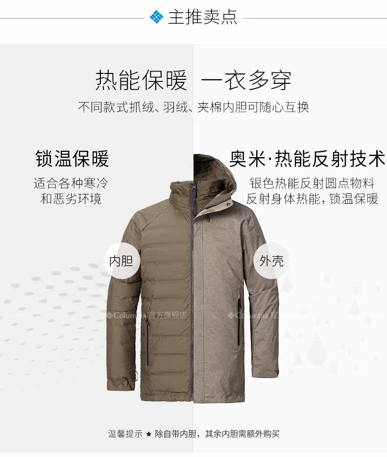 Columbia, дорожный водонепроницаемый вкладыш с пухом, куртка, «три в одном»