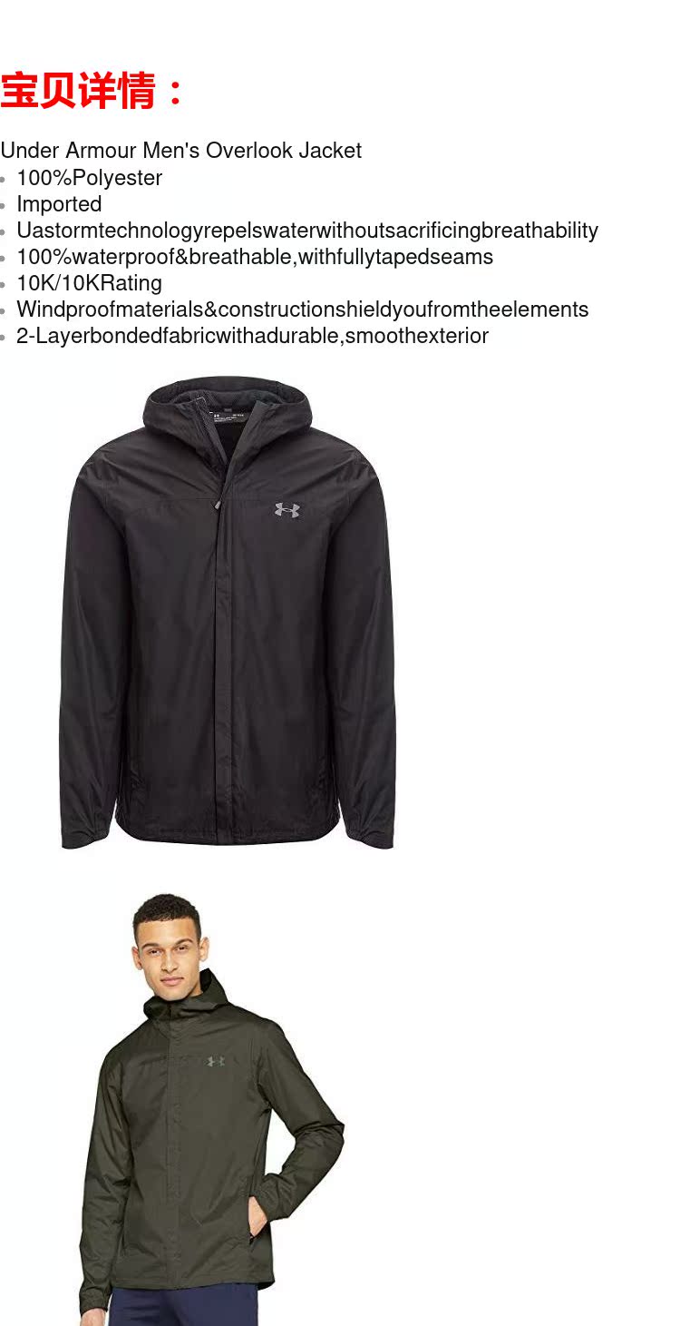 Under armour, водонепроницаемая дышащая куртка с капюшоном, США