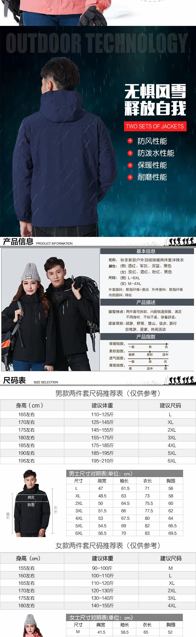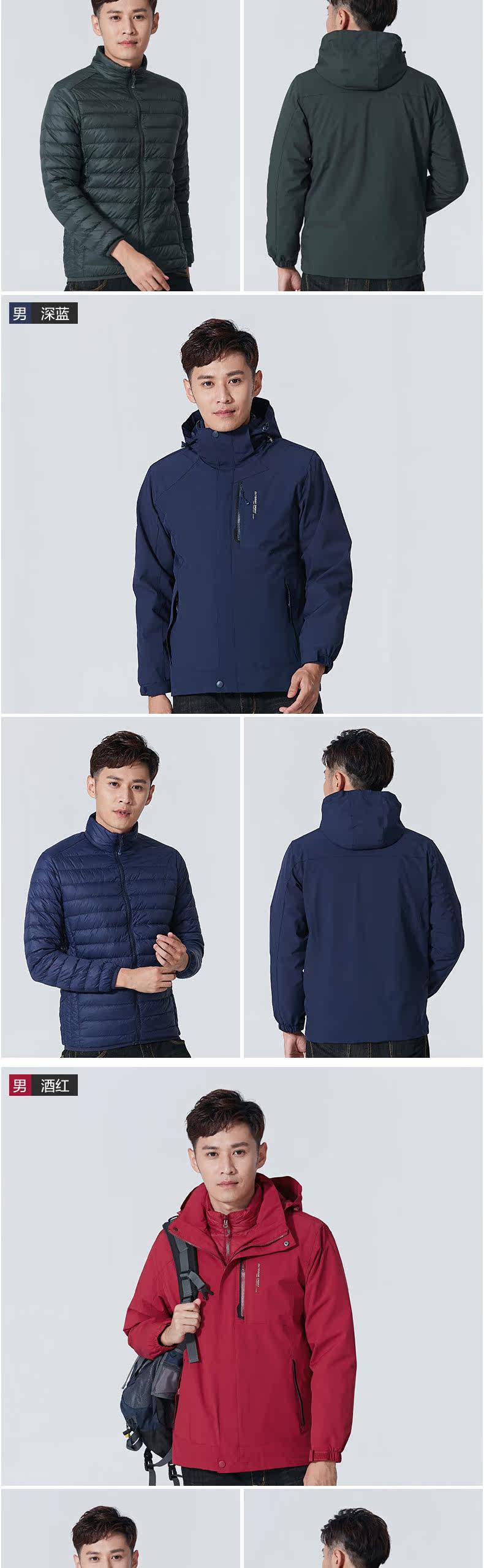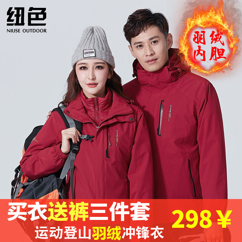Дорожная демисезонная куртка, термобелье подходит для мужчин и женщин с пухом, комплект, водонепроницаемый альпинистский плащ, лыжный лыжный костюм, «три в одном», увеличенная толщина