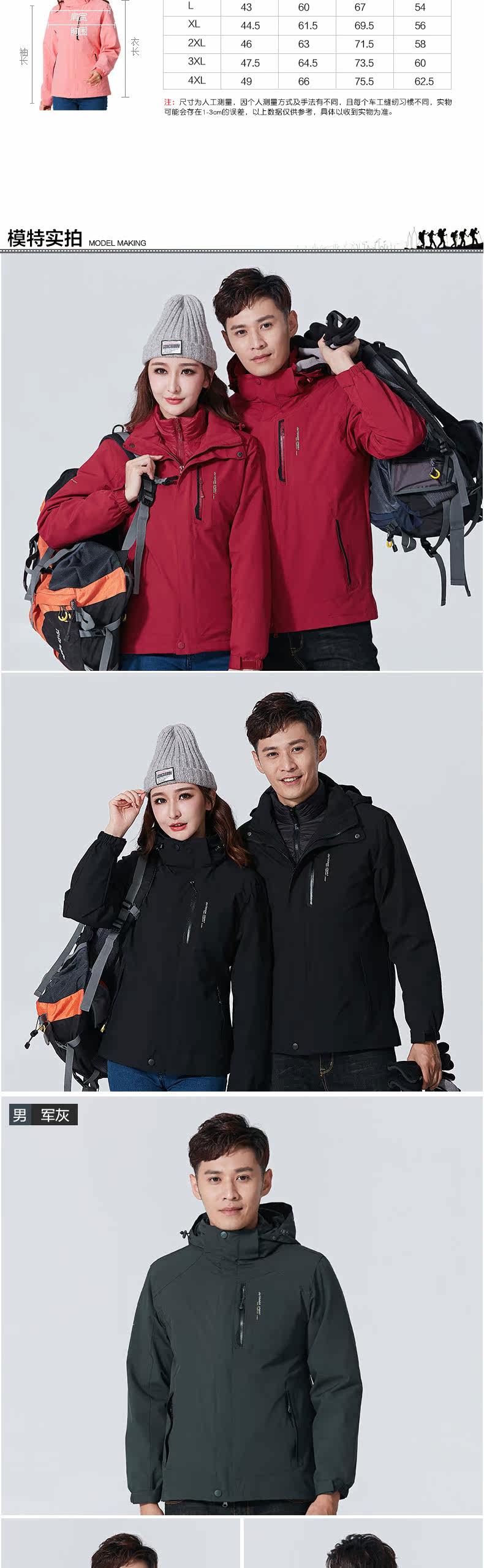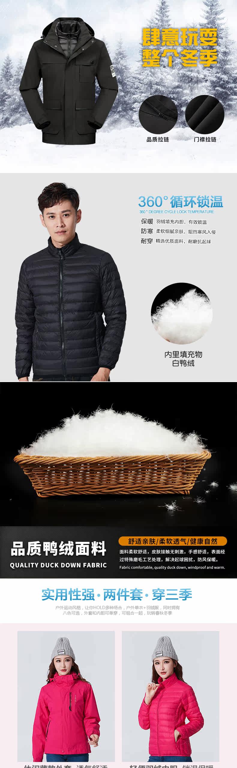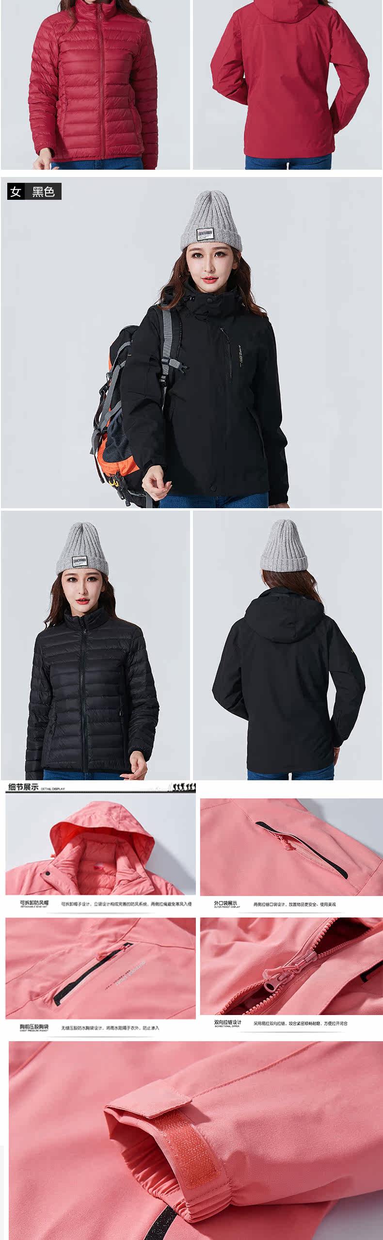 Дорожная демисезонная куртка, термобелье подходит для мужчин и женщин с пухом, комплект, водонепроницаемый альпинистский плащ, лыжный лыжный костюм, «три в одном», увеличенная толщина