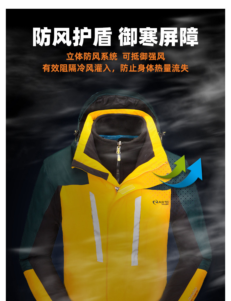 Куртка, съемный утепленный альпинистский зимний комплект, «три в одном»
