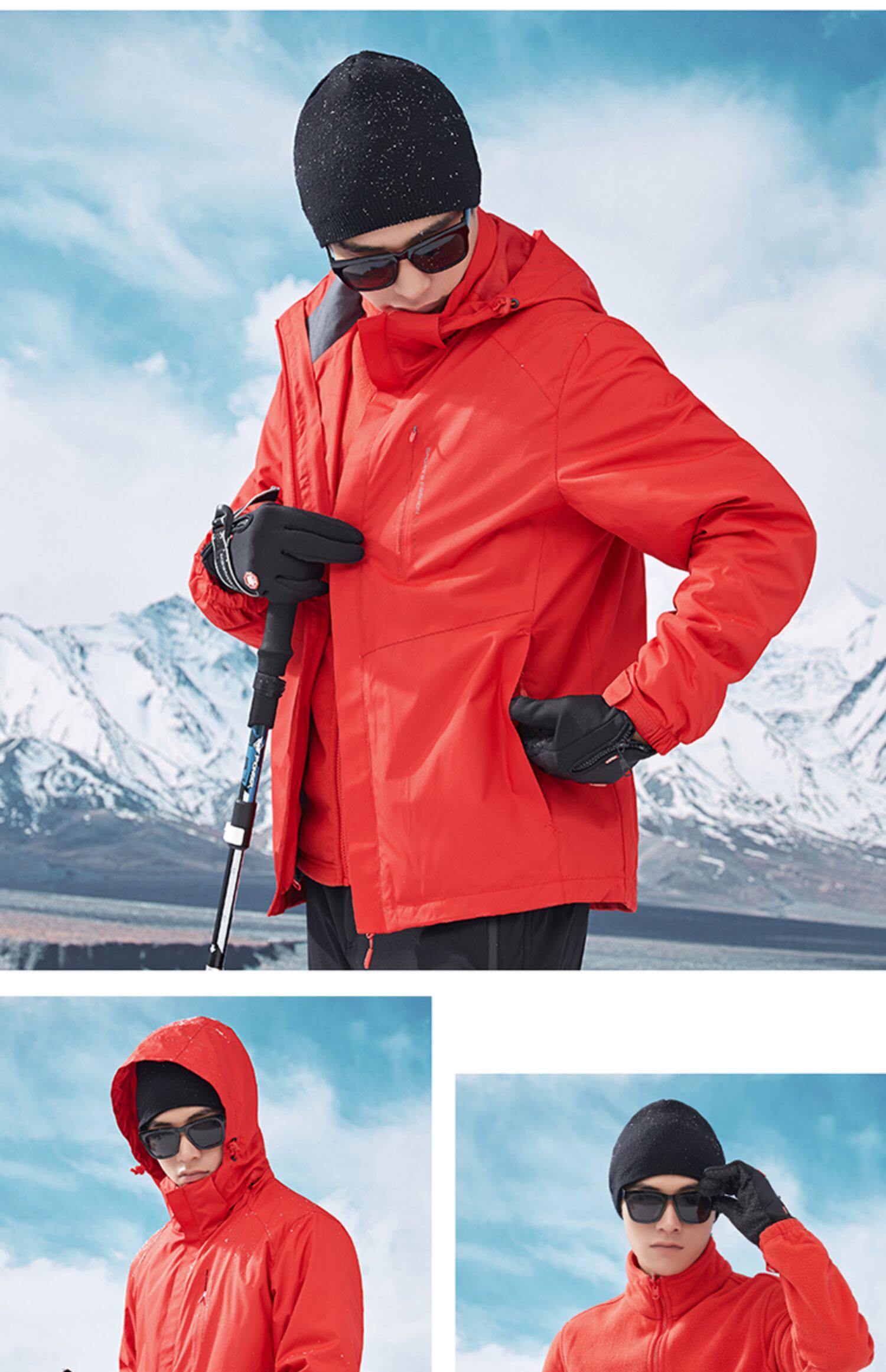 Зимняя дорожная утепленная ветрозащитная альпинистская съемная удерживающая тепло куртка, увеличенная толщина, «три в одном»