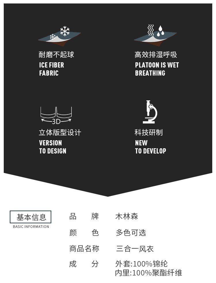 木林森 Дорожный съемный альпинистский вкладыш, лыжный лыжный костюм, плащ, куртка, увеличенная толщина