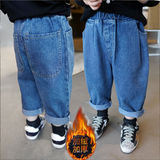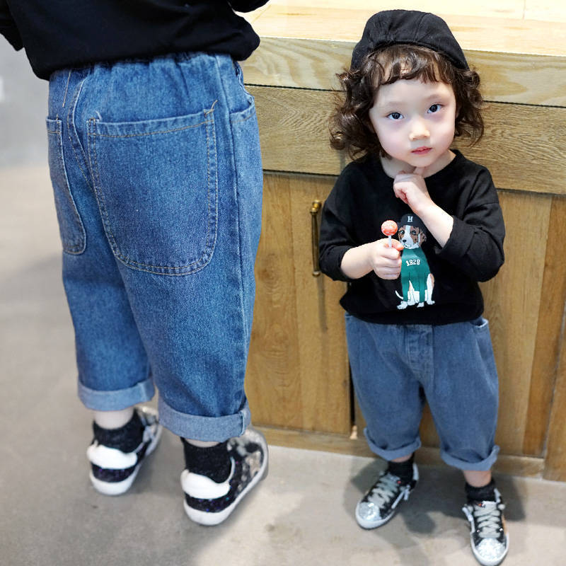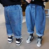 Осенние джинсы, детские штаны подходит для мужчин и женщин для девочек, оверсайз, в корейском стиле, свободный прямой крой