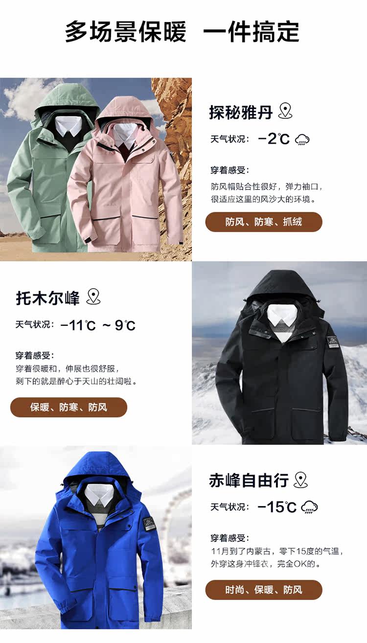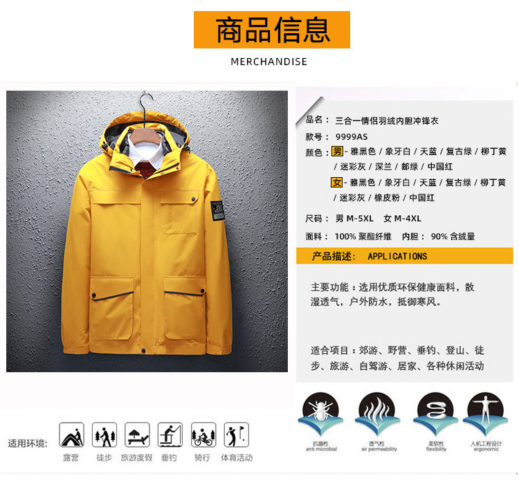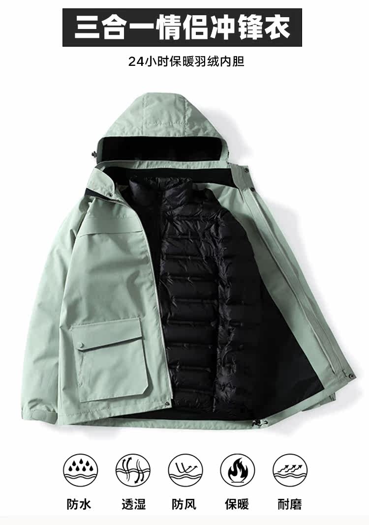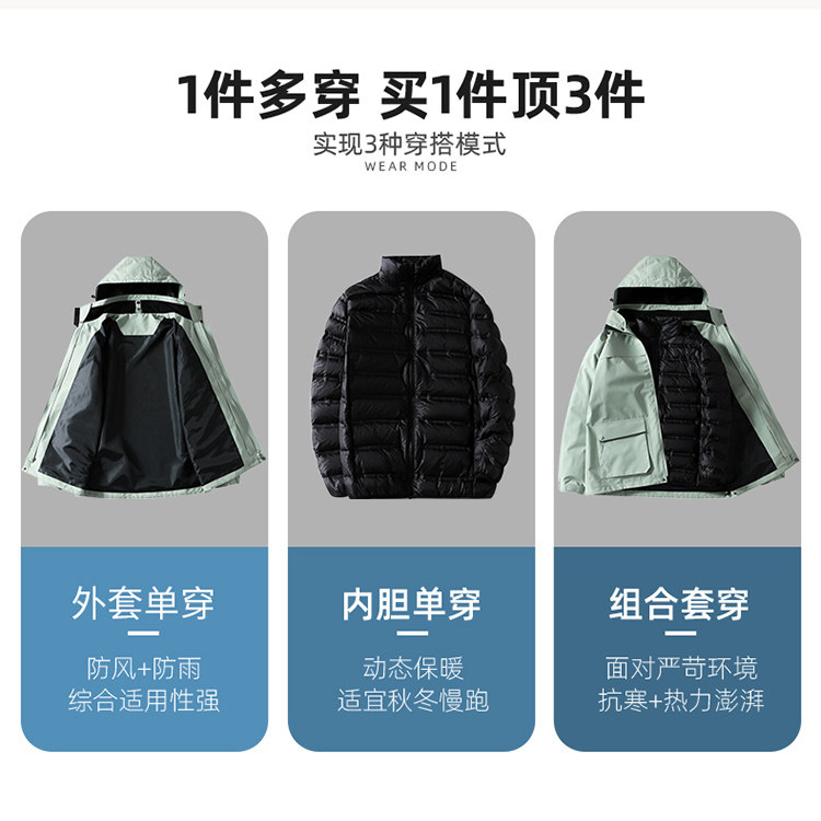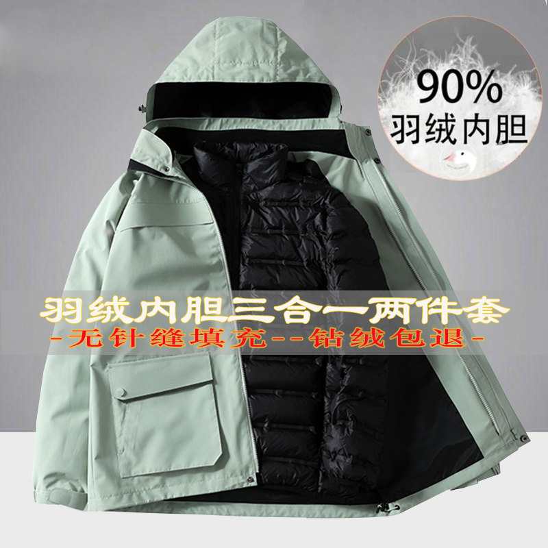 Дорожная демисезонная куртка подходит для мужчин и женщин, съемный вкладыш с пухом, альпинистский комплект подходит для пеших прогулок, «три в одном»