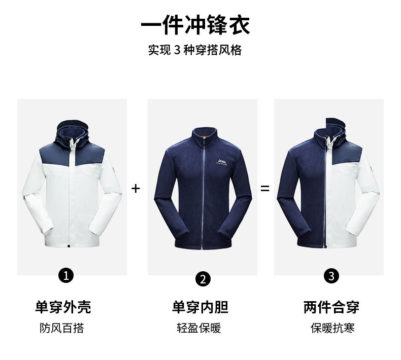 Jeep, джип, демисезонная альпинистская съемная ветрозащитная дорожная куртка, «три в одном»