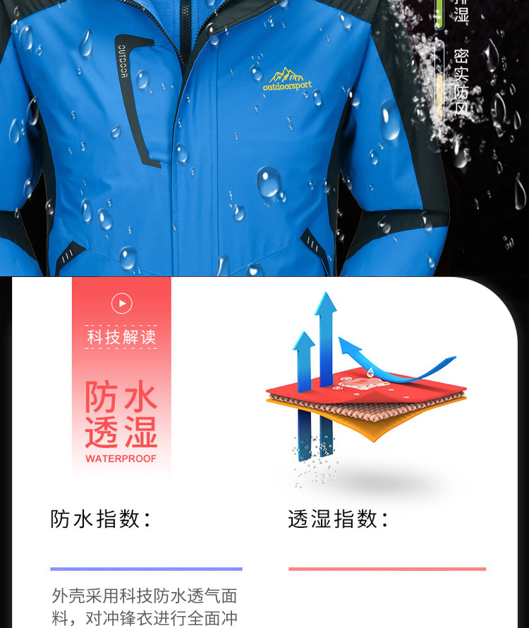 Зимняя съемная куртка, утепленный удерживающий тепло водонепроницаемый ветрозащитный дорожный плащ для скалозалания, «три в одном»