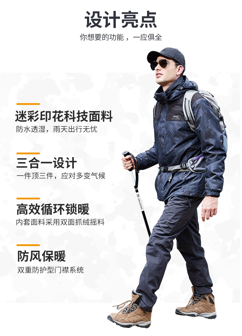 Jeep, мужской джип, съемная альпинистская демисезонная ветрозащитная водонепроницаемая дышащая куртка, «три в одном»
