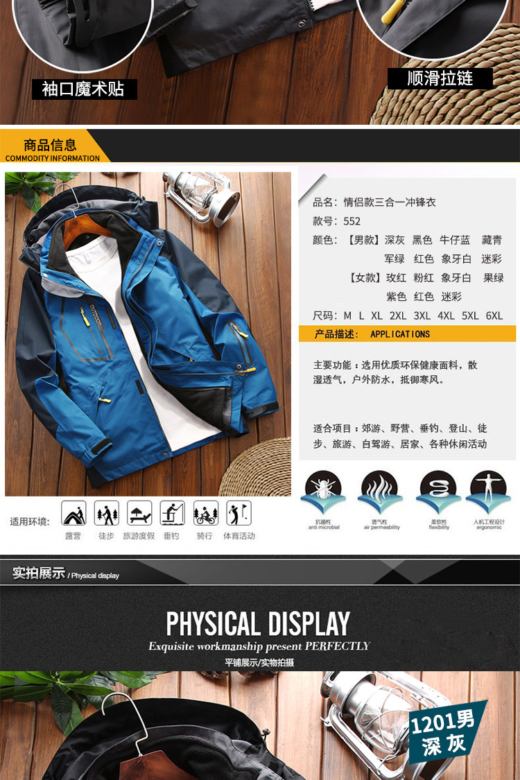 Камуфляжная куртка подходит для мужчин и женщин, съемный утепленный ветрозащитный водонепроницаемый альпинистский комплект, «три в одном»