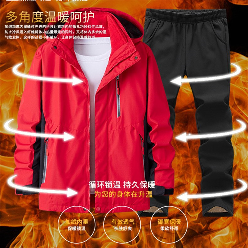 Куртка, утепленный комплект подходит для мужчин и женщин, удерживающий тепло съемный зимний водонепроницаемый комбинезон, «три в одном», большой размер