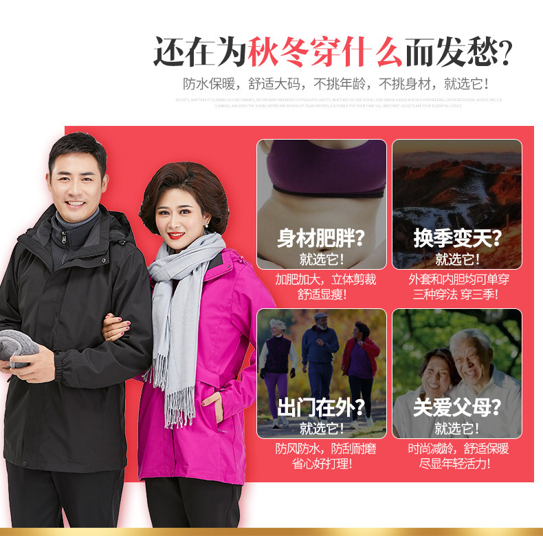 Демисезонная длинная дорожная куртка, удерживающий тепло комплект для пожилых людей, ветрозащитный плащ, «три в одном», для среднего возраста, большой размер