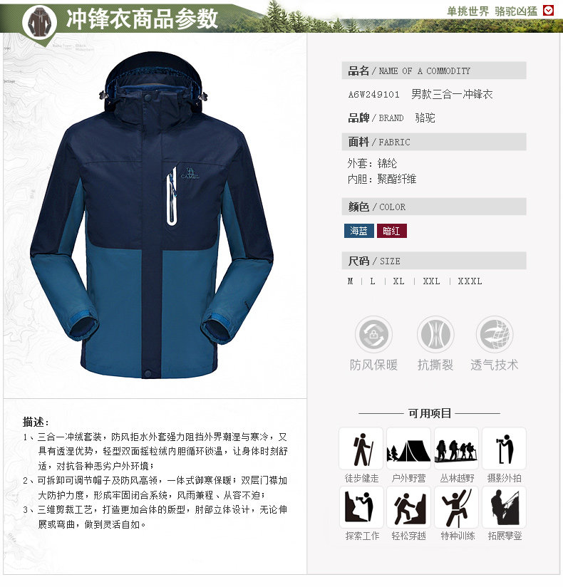 Дорожная износостойкая удерживающая тепло альпинистская куртка, «три в одном»