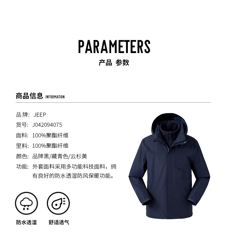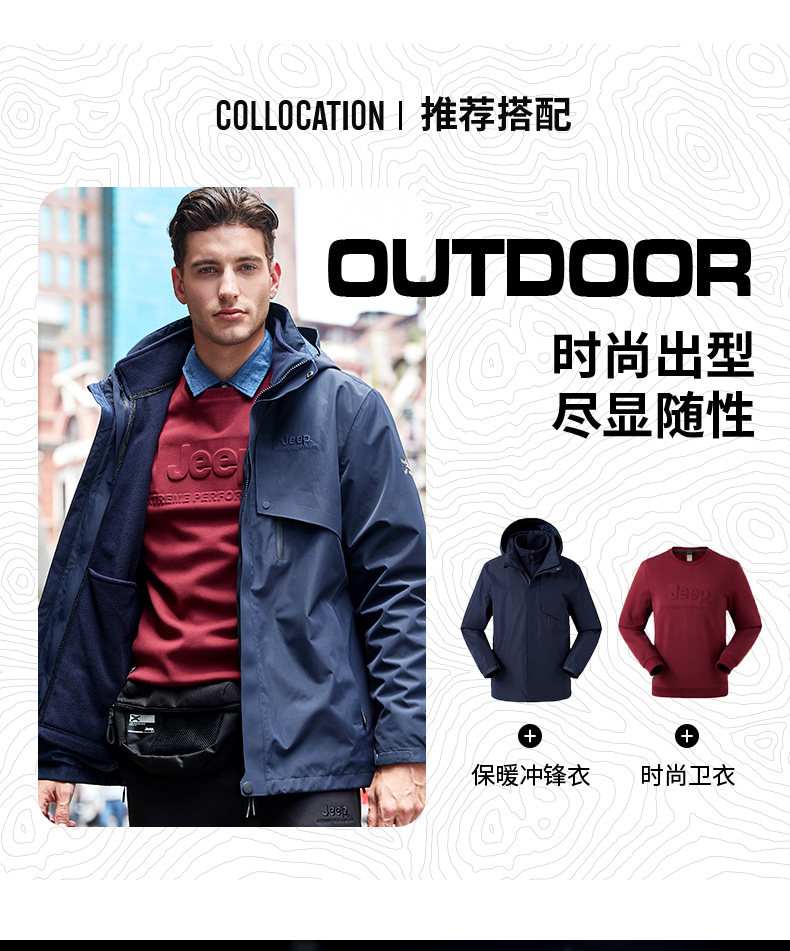 Jeep, джип, куртка, съемный бархатный утепленный дорожный вкладыш, «три в одном»