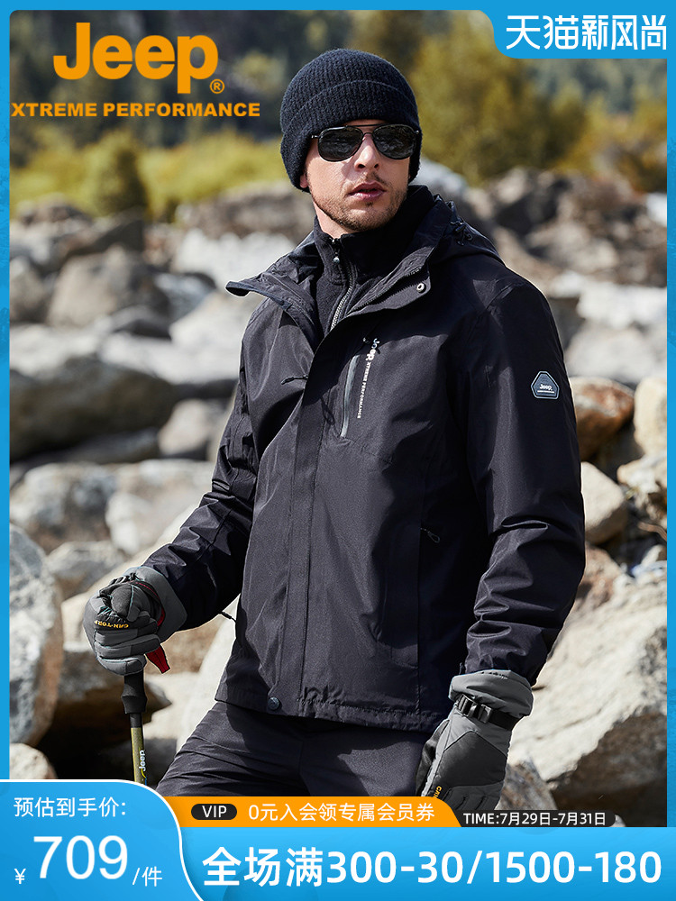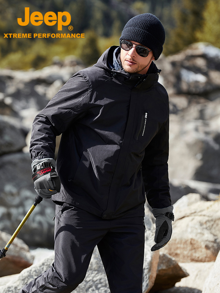 Jeep, джип, мужская съемная бархатная удерживающая тепло водонепроницаемая дорожная куртка для скалозалания, «три в одном»