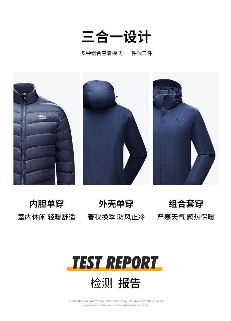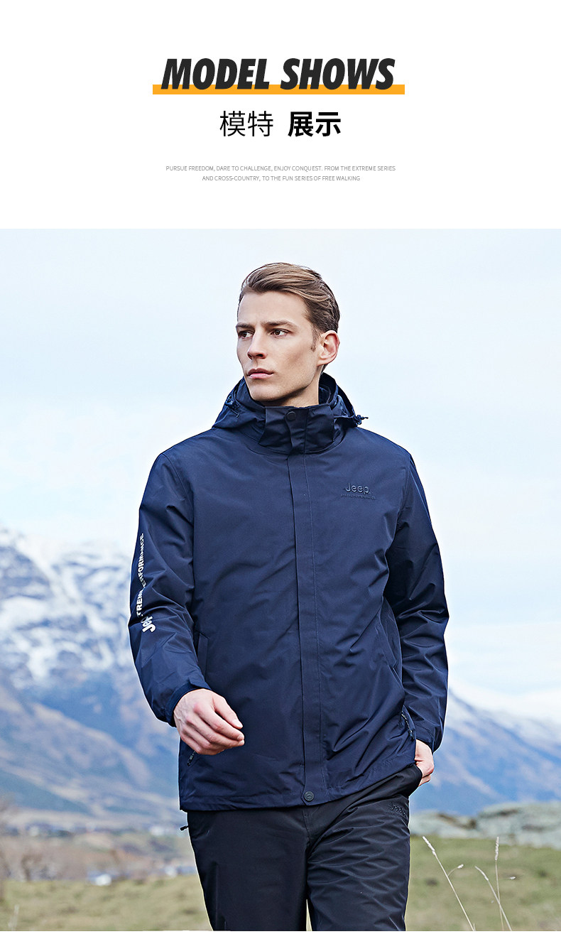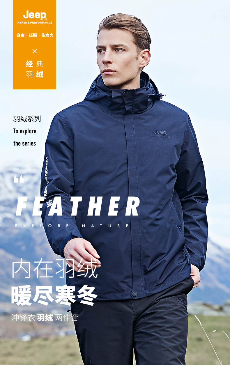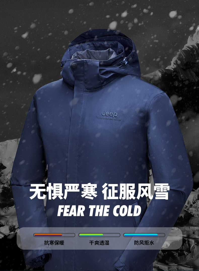 Jeep, мужской джип, куртка, съемный утепленный удерживающий тепло водонепроницаемый вкладыш с пухом, «три в одном»