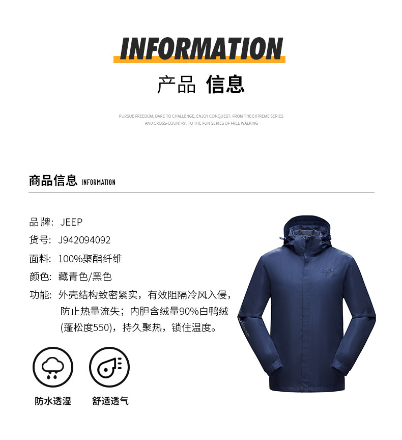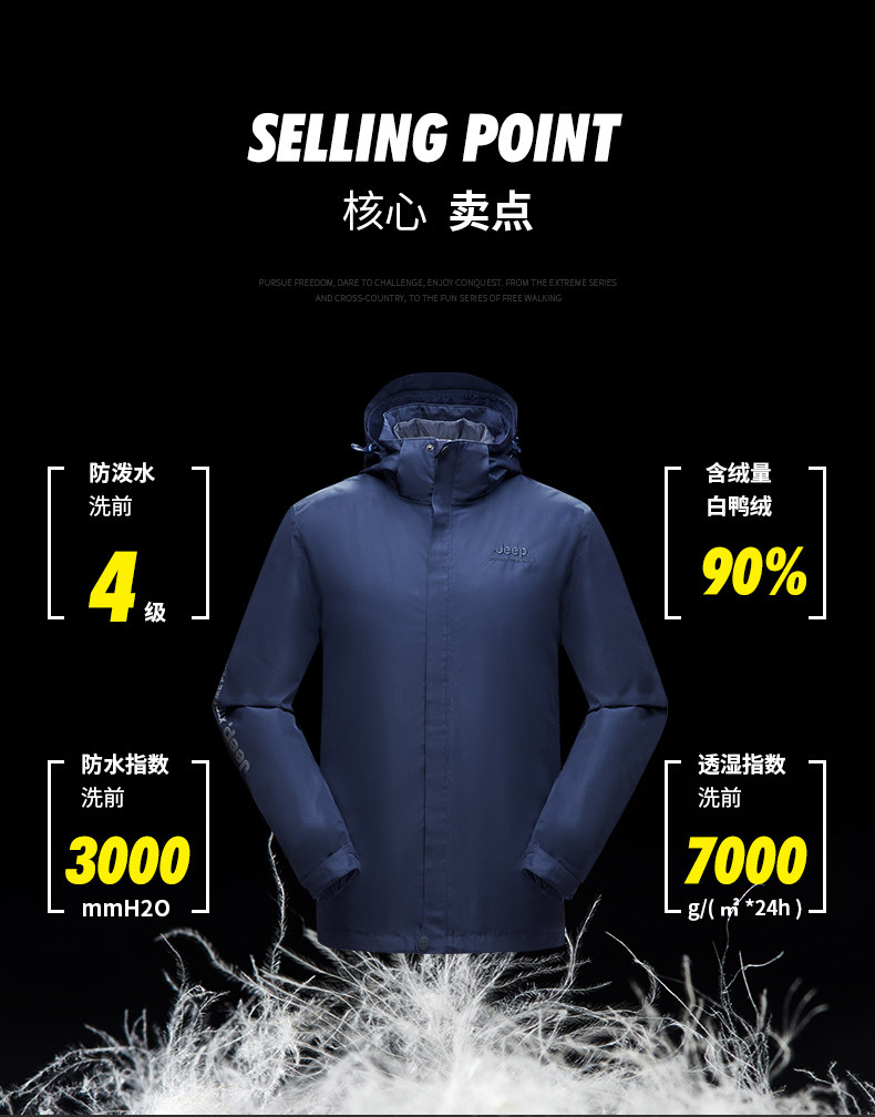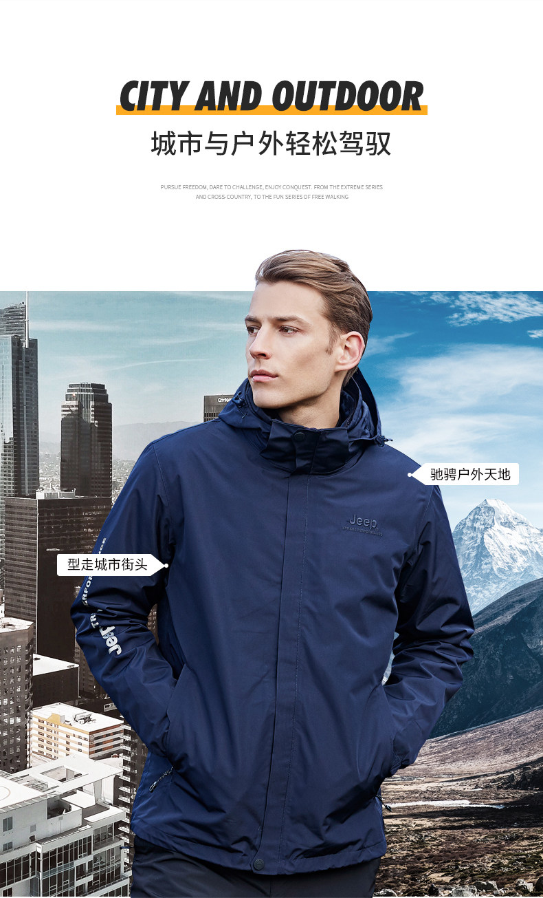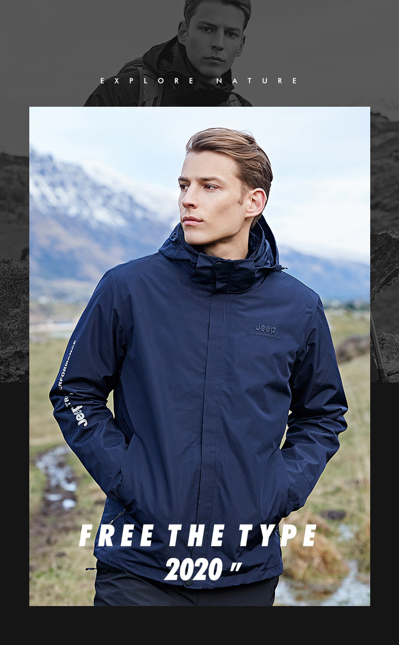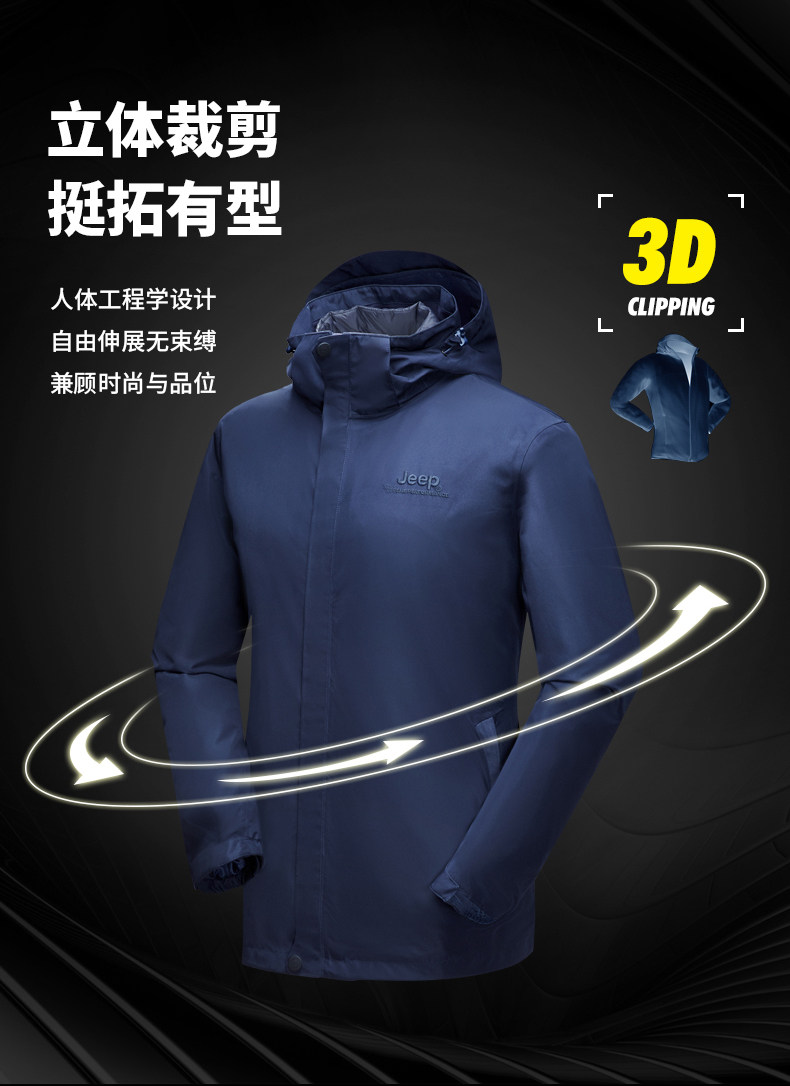 Jeep, мужской джип, куртка, съемный утепленный удерживающий тепло водонепроницаемый вкладыш с пухом, «три в одном»