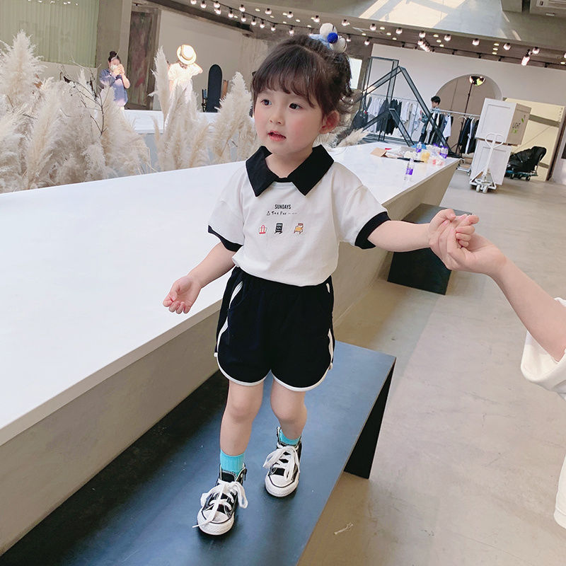 Летний спортивный костюм, детский комплект, коллекция 2021, воротник поло, популярно в интернете, в западном стиле