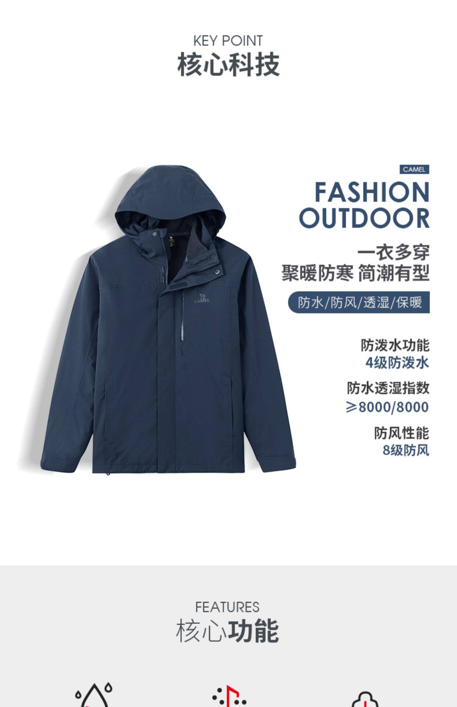 Дорожная демисезонная съемная куртка, ветрозащитный водонепроницаемый альпинистский комплект, «три в одном»