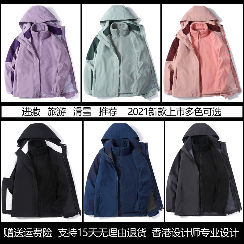 Дорожная осенняя флисовая съемная водонепроницаемая ветрозащитная альпинистская лыжная куртка подходит для мужчин и женщин, «три в одном»