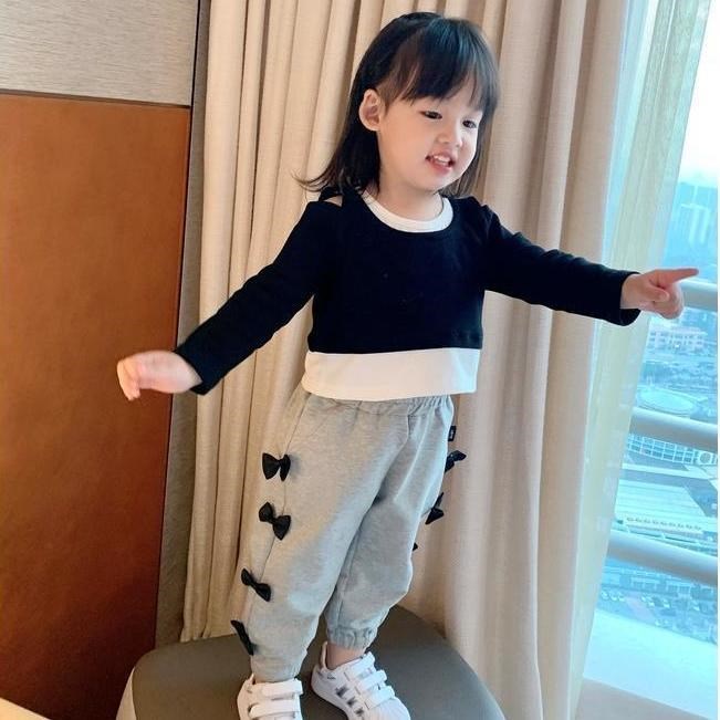 Осенние детские штаны с бантиком для раннего возраста для отдыха, коллекция 2021, в западном стиле, оверсайз