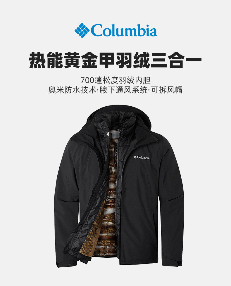 Columbia, демисезонная водонепроницаемая куртка с пухом, «три в одном»