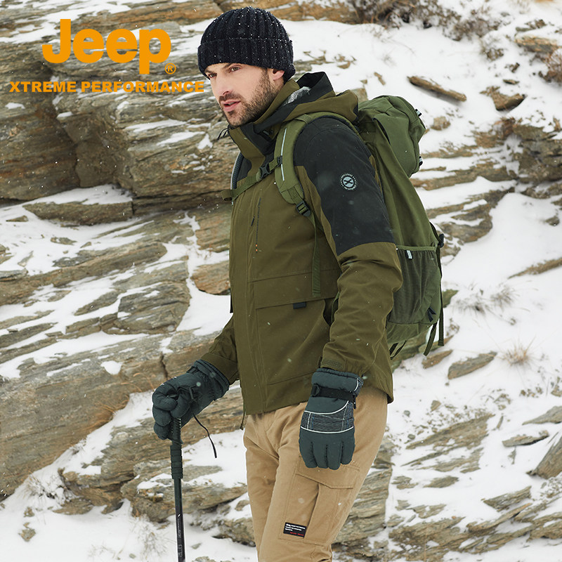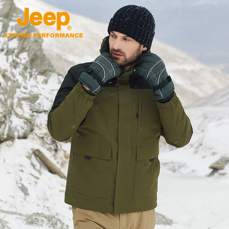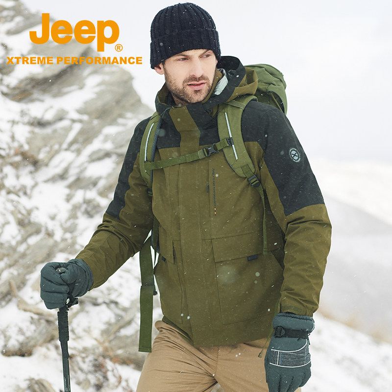 Jeep, джип с пухом, мужская дорожная бархатная съемная водонепроницаемая альпинистская куртка, «три в одном», утиный пух
