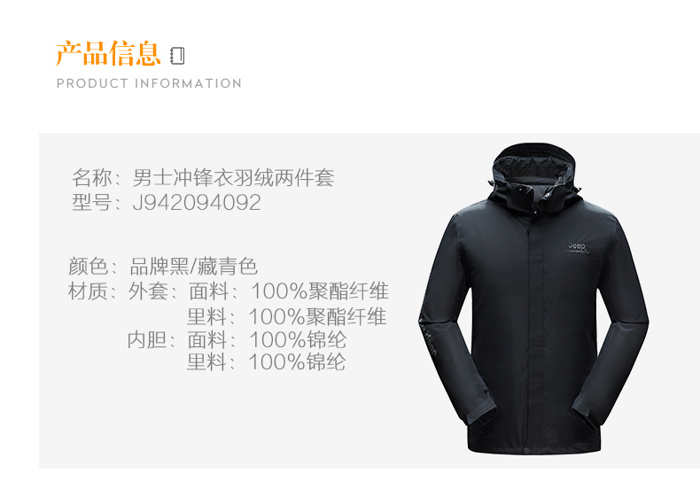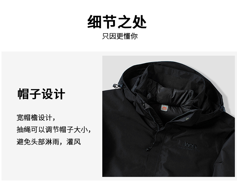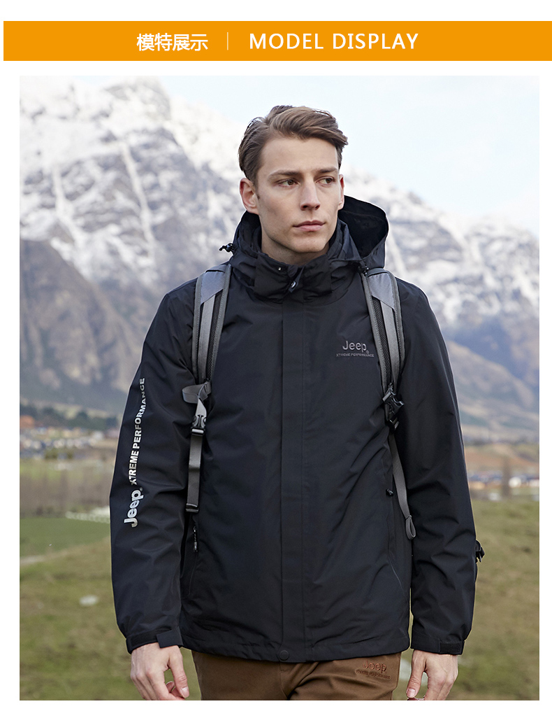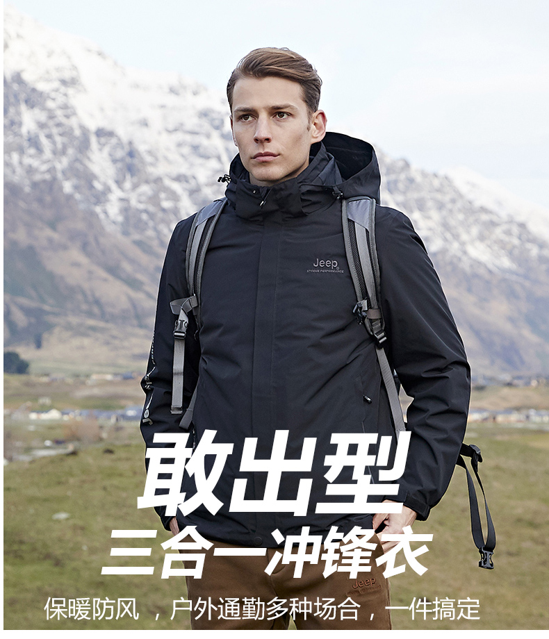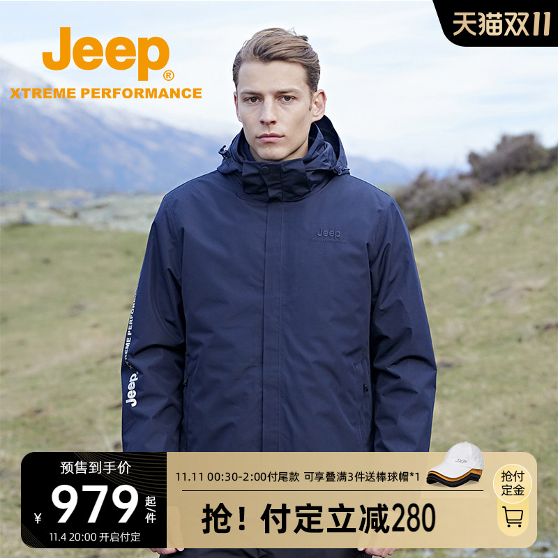 Jeep, джип с пухом, мужская съемная водонепроницаемая альпинистская куртка, «три в одном»