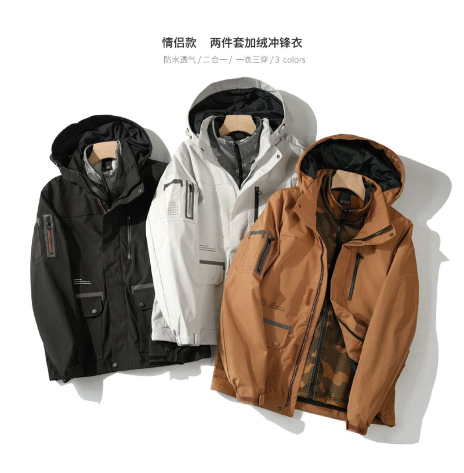 Комплект, водонепроницаемая бархатная съемная зимняя дорожная куртка
