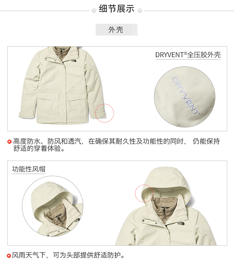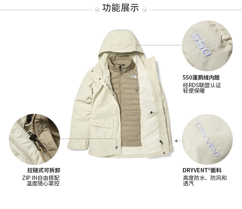 [Классическая модель] ThenOrthface к северу от трех -в одном куртке женская открытая бархатный бархатный бархатный бархатный