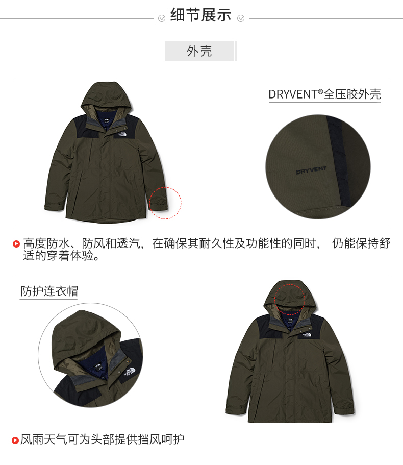 [Классическая модель] к северу от трех -один куртка мужская водонепроницаем