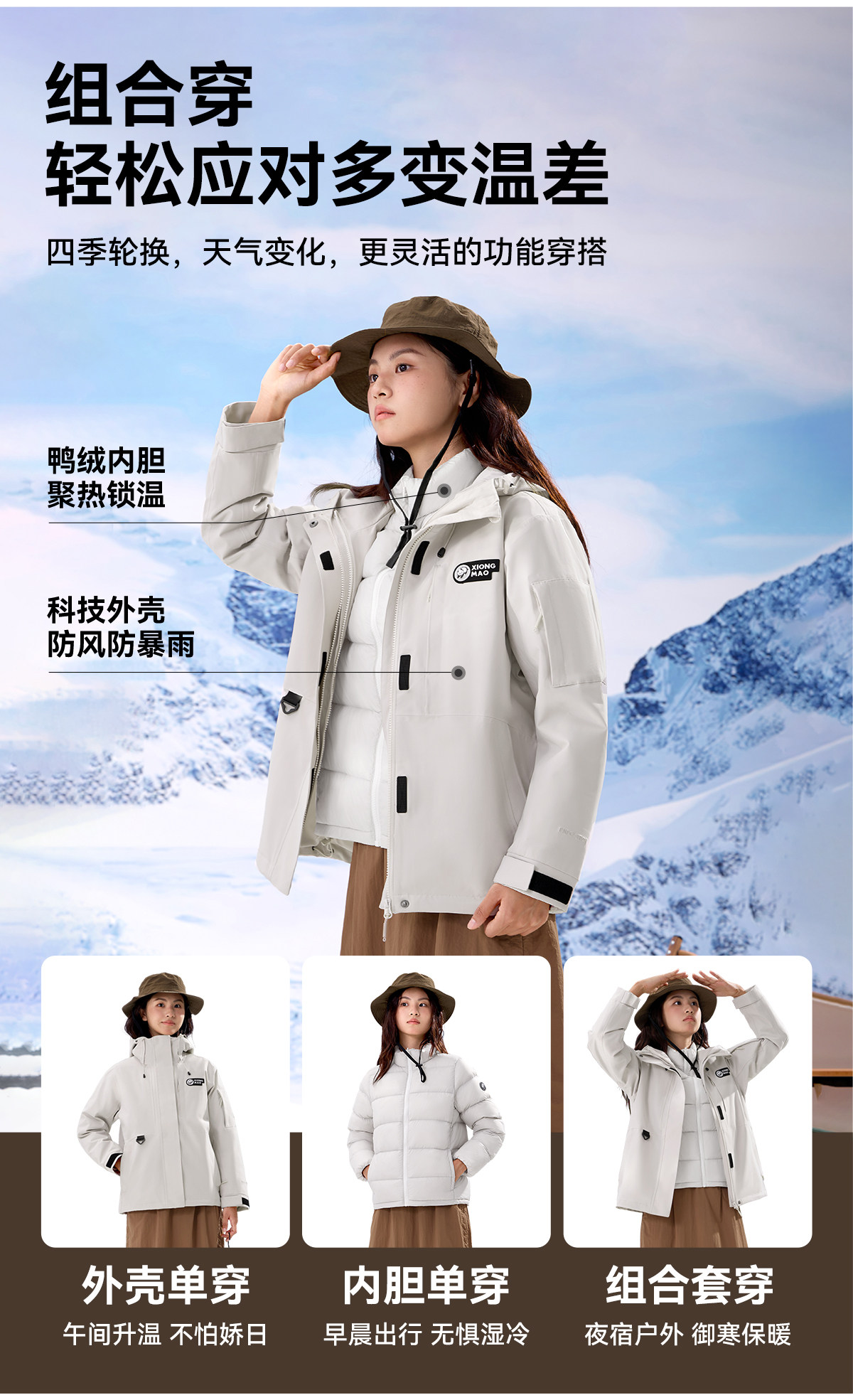 Дорожная зимняя ветрозащитная удерживающая тепло альпинистская куртка подходит для мужчин и женщин с пухом, увеличенная толщина, «три в одном»