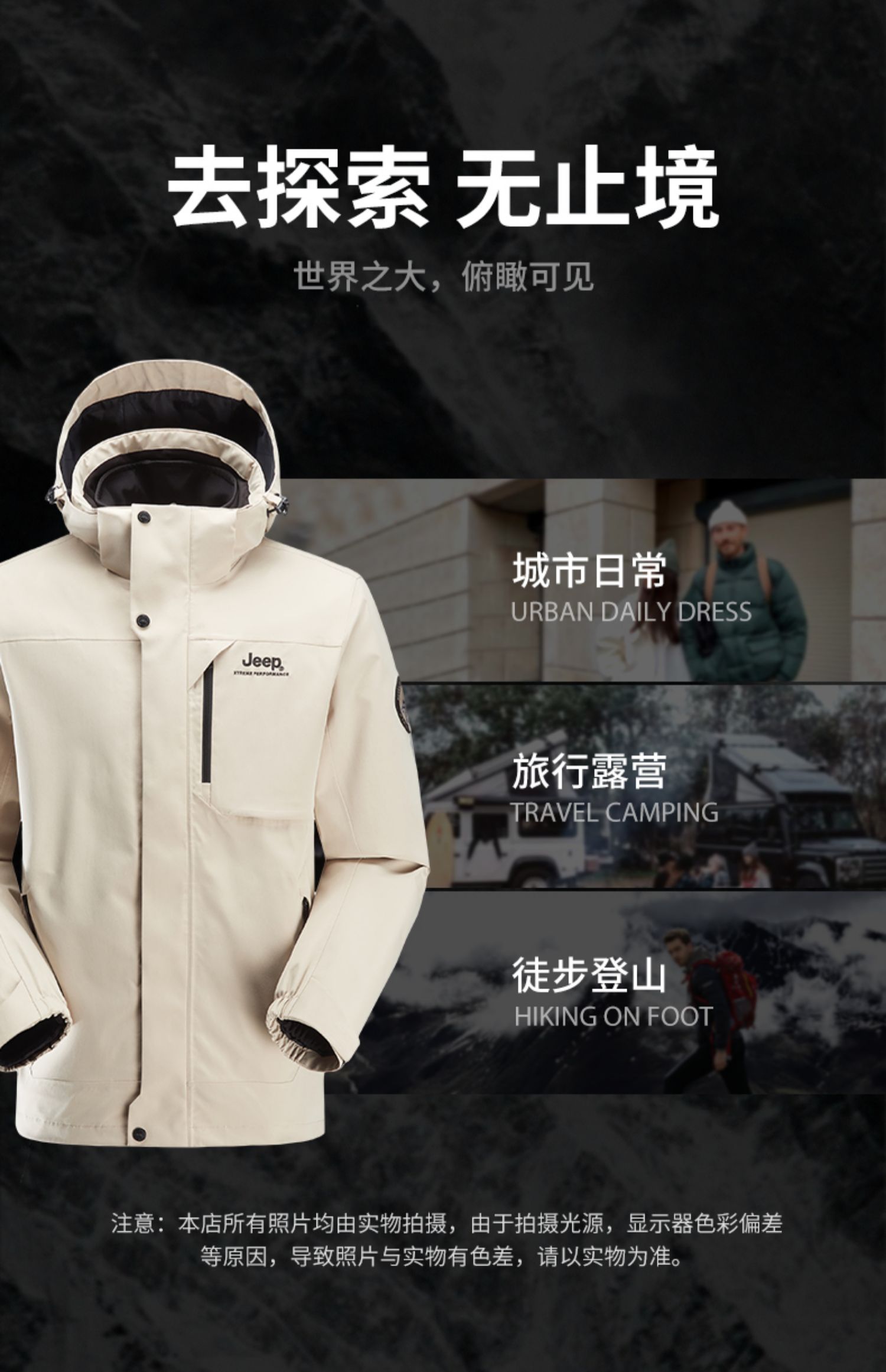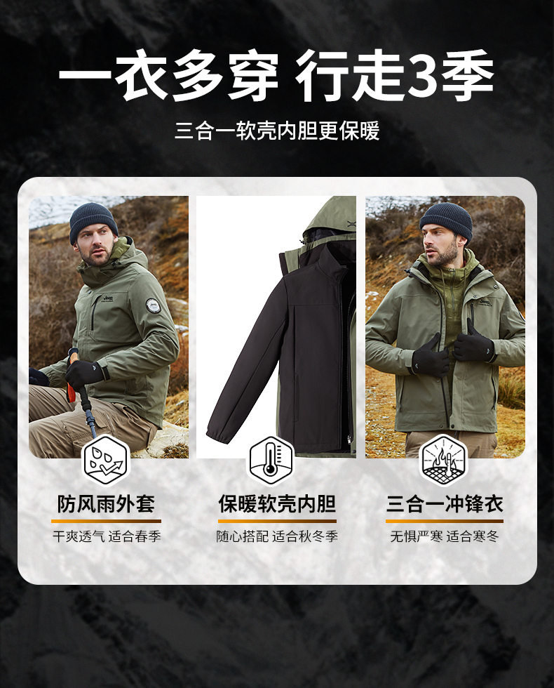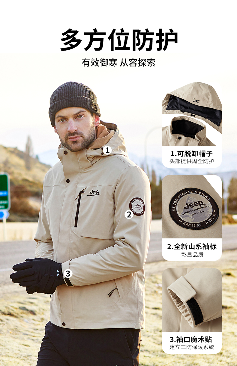 Jeep, вкладыш, мужская водонепроницаемая съемная альпинистская утепленная куртка, «три в одном»